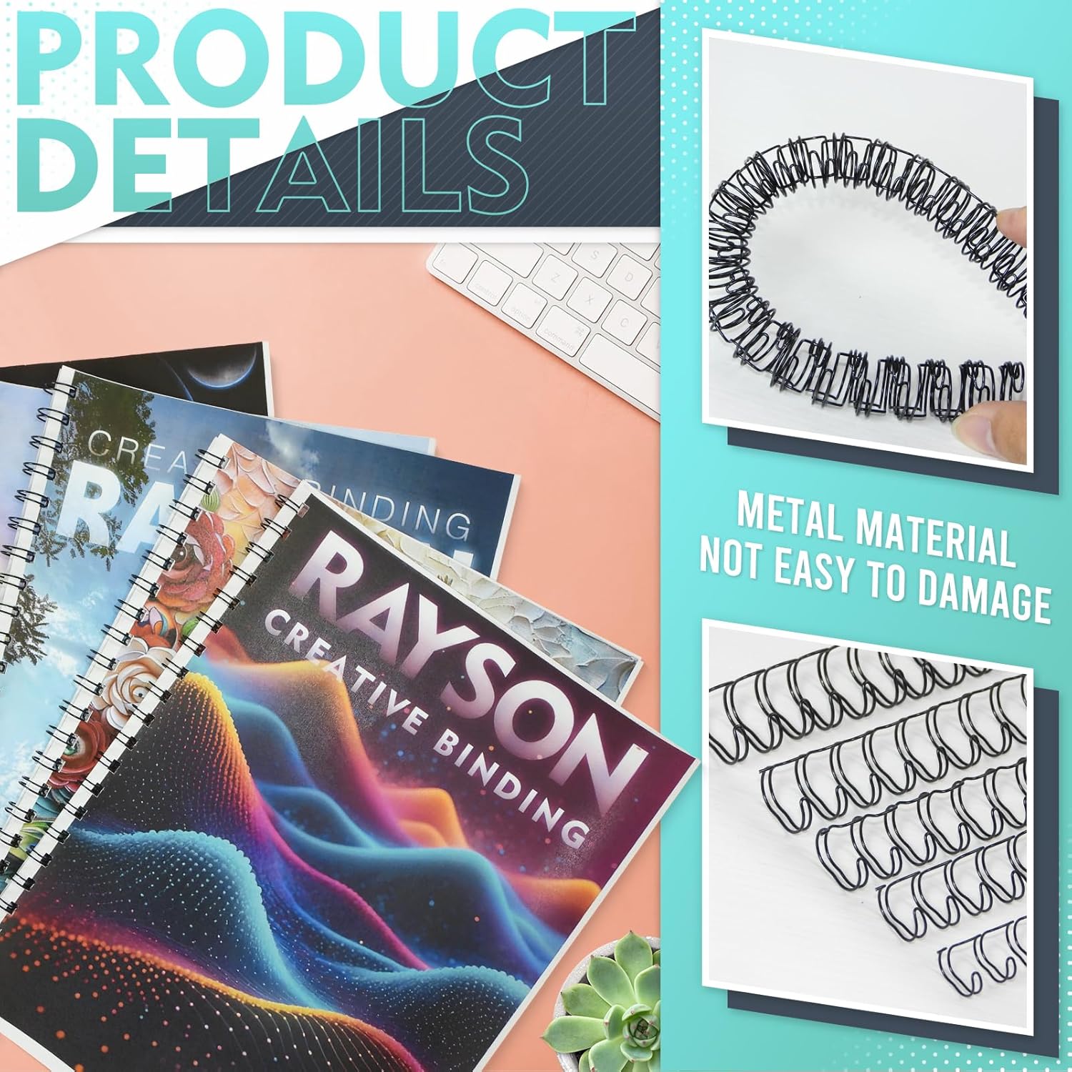 Rayson Double Loop Binding Wires, Mixed Sizes (3/8", 7/16", 1/2", 9/16", 5/8") 2:1 Pitch Wire Binding Spines, 21-Loop Black, Pack of 100