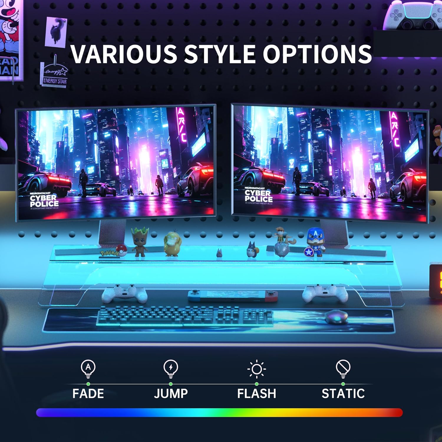 - LED LIGHT STRIP:Featuring an integrated LED light strip, this riser adds a soft, ambient glow to your workspace. It not only enhances your desk lighting but also creates a modern, stylish atmosphere, perfect for both work and relaxation.