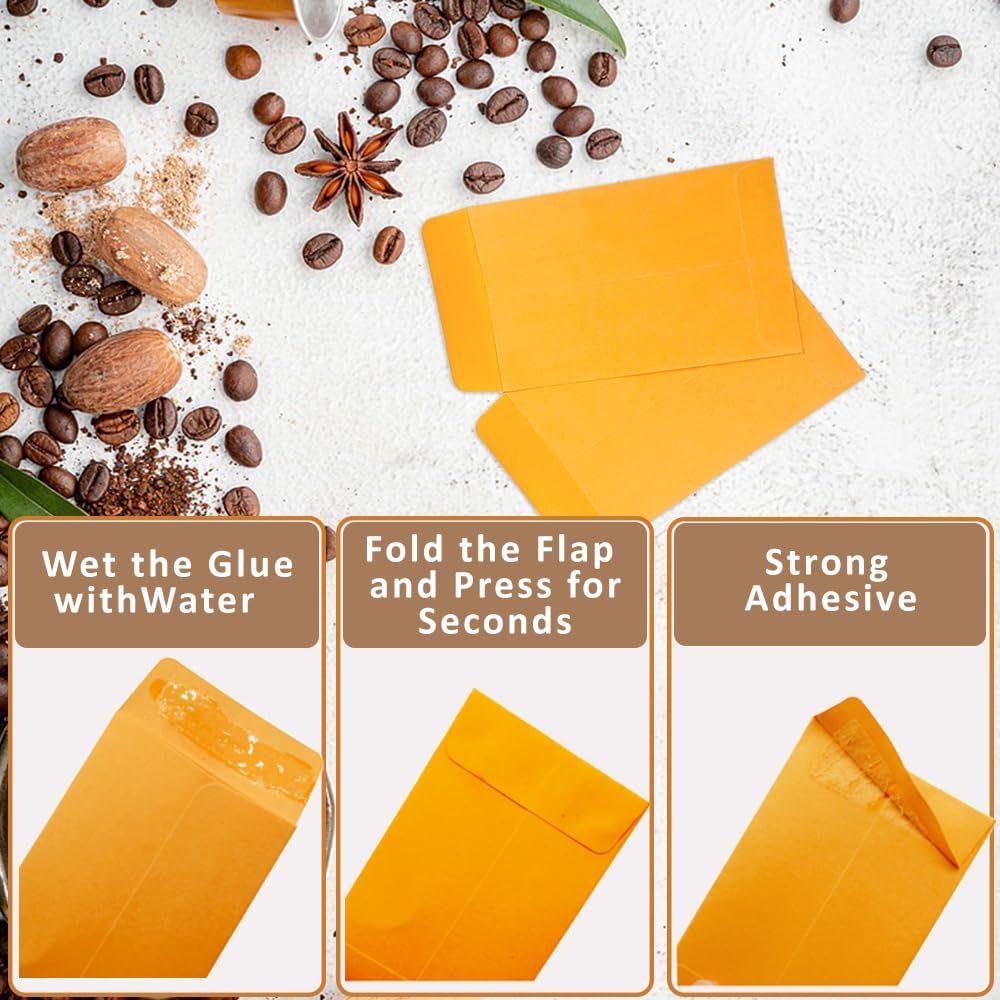 #1 600 Pcs Small Coin Envelopes 2.25" x 3.5" with Gummed Flap, Yellow Kraft Mini Envelopes for Storing Keys, Stamps, Seeds, Tips and Small Items (600)