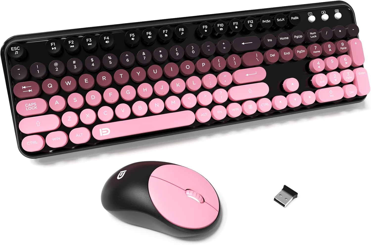 FD Wireless Keyboard and Mouse Combo - 2.4G Full-Sized Cute Colorful Mouse and Keyboard with 104 Round Keys Retro Typewriter Keyboards for Laptop/Windows/PC - Pink Gradient