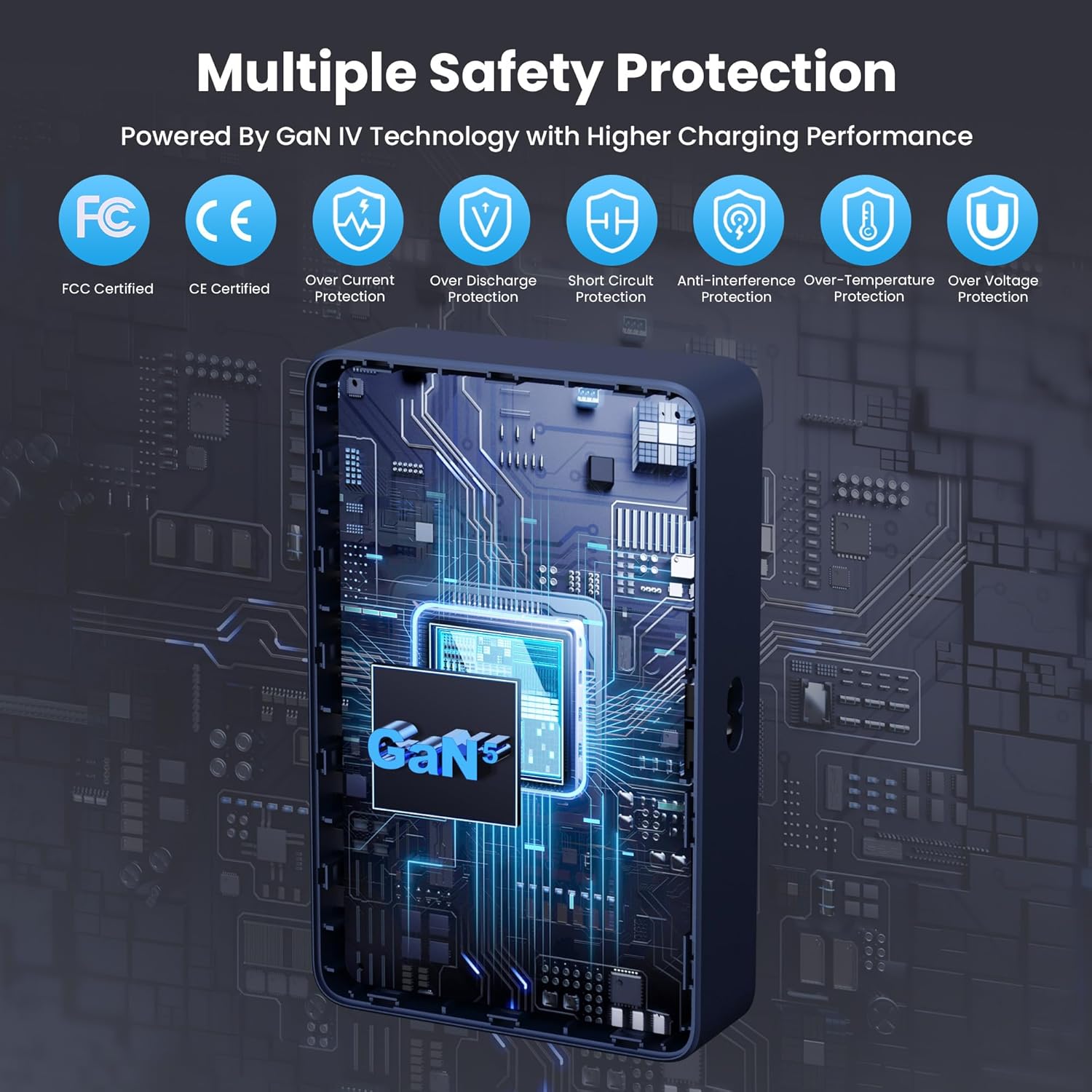 - 【GAN Fast USB Charging Station】The USB C charger adapted GaN5 generation chip technology, built-in multi-protection system and premium microchips. With higher energy efficiency, higher resistance to radiation and upgraded heat dissipation, Gallium Nitride (GaN) makes our chargers smaller and safer without sacrificing a drop of power.