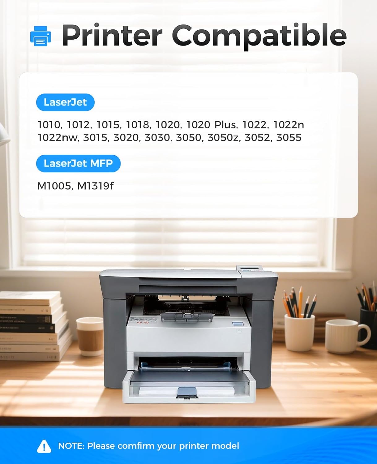 - Compatible Devices : Compatible with LaserJet 1010,1012,1015,1018,1020,1020 Plus,1022,1022n,1022nw,3015,3020,3030,3050,3050z,3052,3055 LaserJet MFP M1005,M1319f Series Printer. Compatible with LaserJet 1010,1012,1015,1018,1020,1020 Plus,1022,1022n,1022nw,3015,3020,3030,3050,3050z,3052,3055 LaserJet MFP M1005,M1319f Series Printer. See more