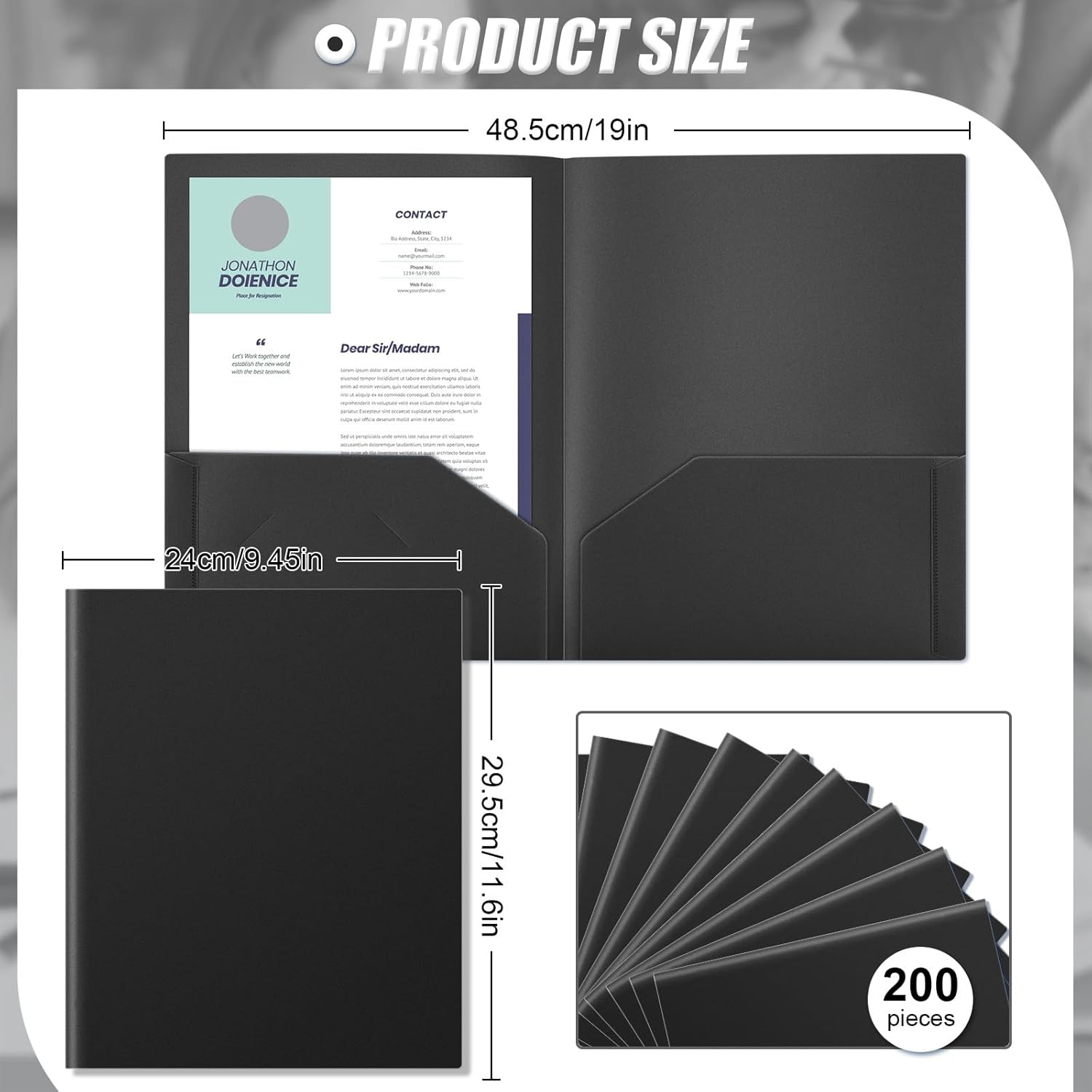- Package Included: you will receive 200 black pocket folders, each folder is designed with 2 pockets, suitable for holding 8.5 x 11 inch letter size paper, each pocket can easily and neatly stack 50 letter size pages paper, sufficient quantity to meet your daily use and replacement needs