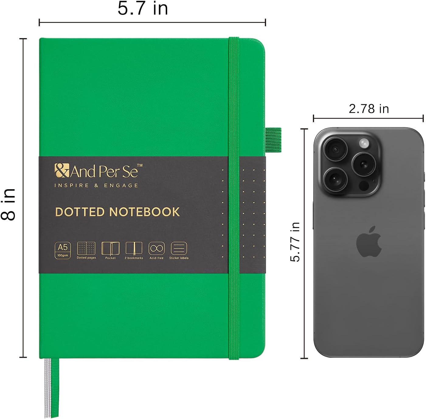 &And Per Se Dotted Journal Notebook, A5 Hardcover Bullet Dotted Journal, 160 Pages 100 gsm Thick Dotted Paper, 3 Sheets of Stickers Included - 5.7'' x 8''(Emerald)