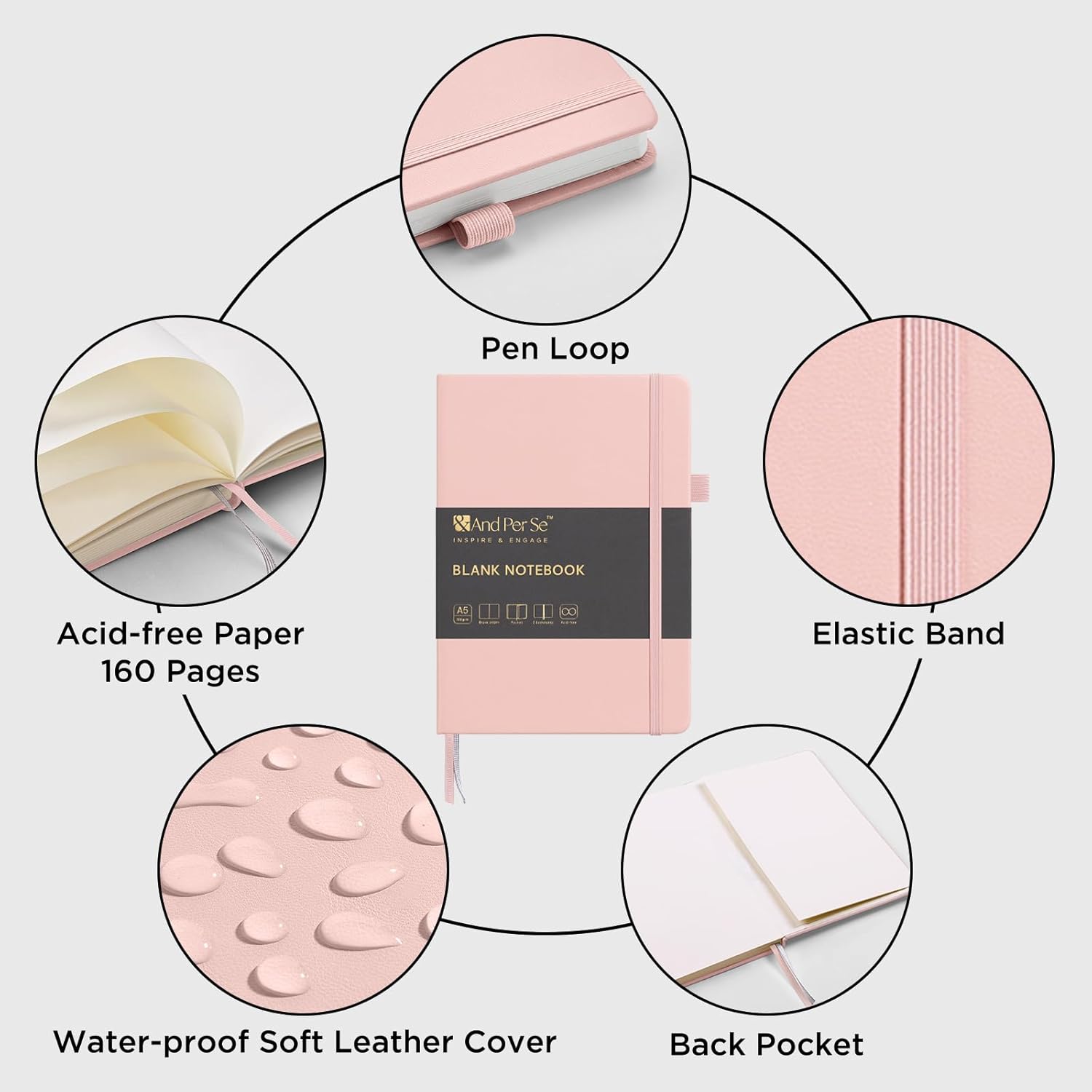 &And Per Se Blank Journal Notebook, 160 Pages, 5.7 x 8 inches College Ruled Thick Paper Notebook Journals for Writing, Hardcover Notebook(1 Pack, pink)