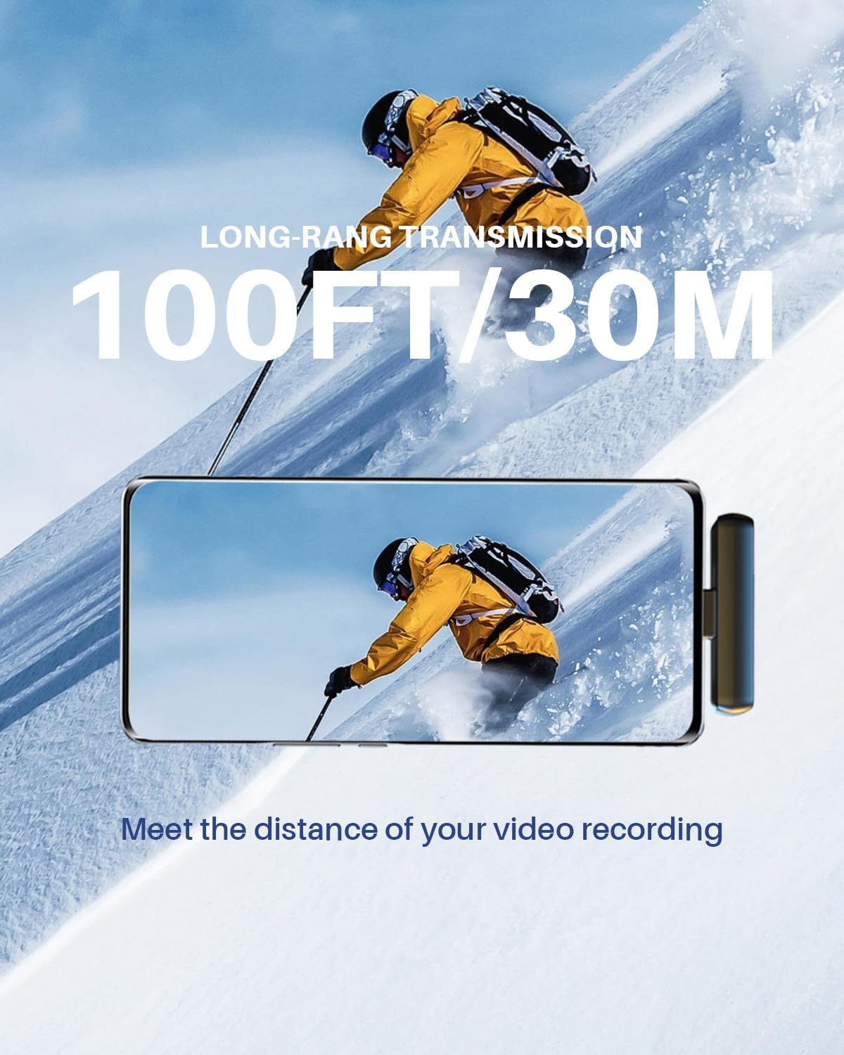 - Up to 100FT Long-Range Transmission: Experience stable, long-range connectivity indoors or outdoors with our optimized antenna design. The omni-directional microphone and upgraded high-sensitivity condenser capture rich, true-to-life sound while reducing ambient noise, enhancing vocal clarity for podcasts, interviews, live streams, and calls. Perfect for content creators, journalists, instructors, and professionals seeking studio-quality audio on the go