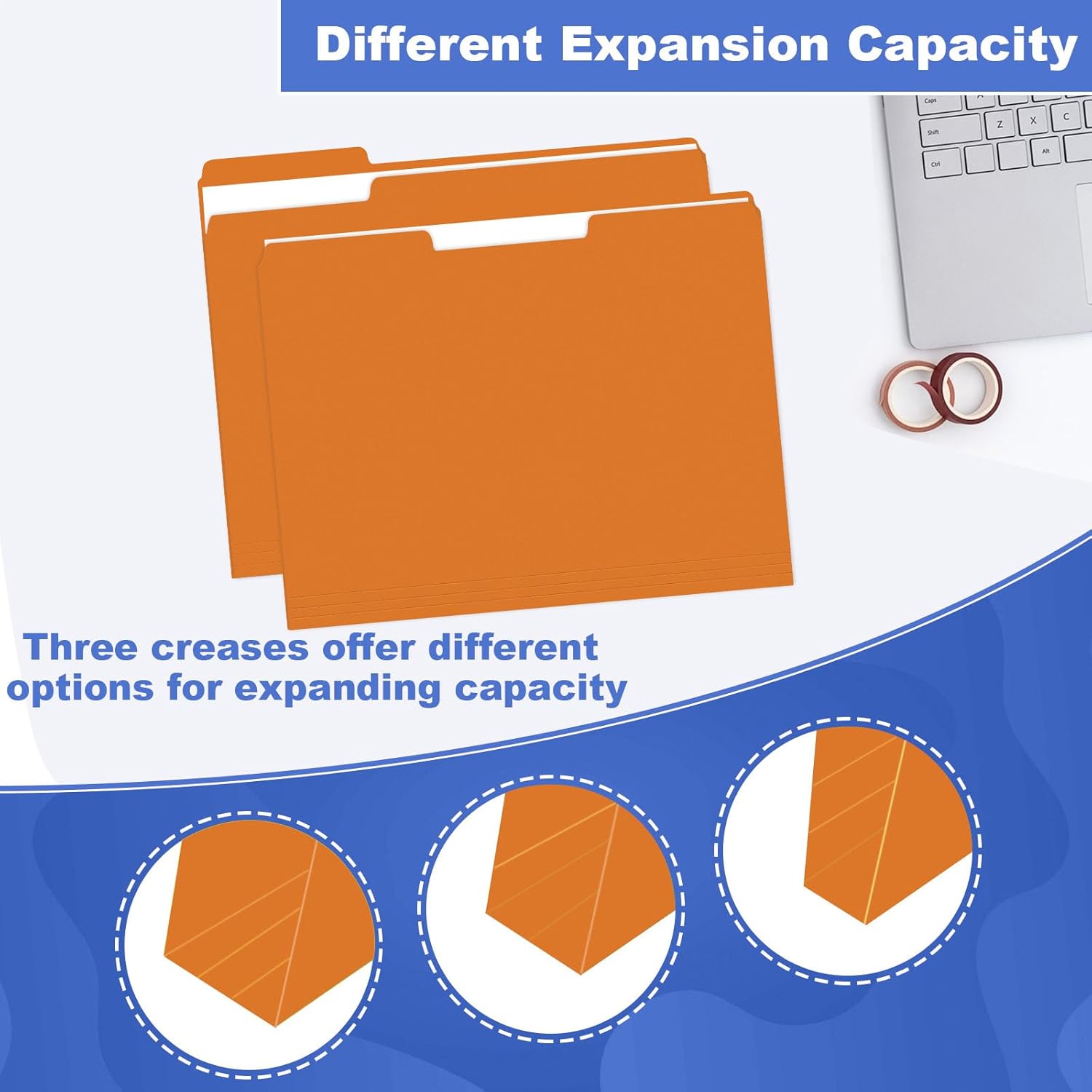 File Folder, HERKKA 120 Pack 1/3 Cut Tab File Folders, File Folders Great for Organizing and Filing, Letter Size, Orange