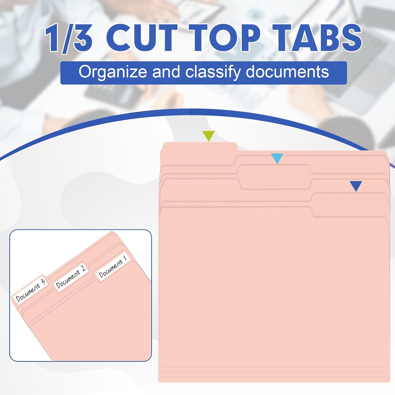 - ECONOMICAL & ECO-CONSCIOUS: Protect the environment by using tabs made with recyclable paper. Recyclable pink filing folders (120-count) for neatly storing and organizing documents.
