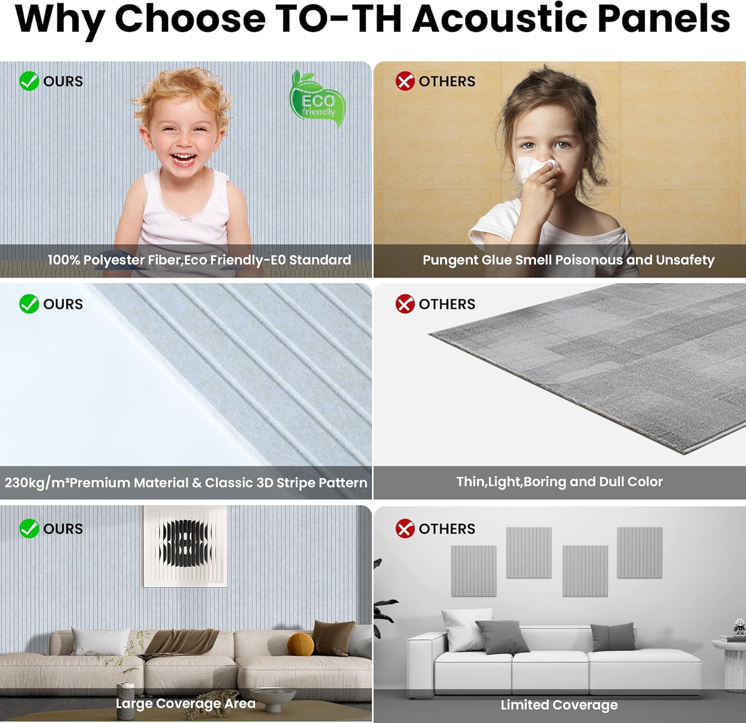 - 100% Polyester Fiber - The wall soundproofing panels is carefully made of 100% polyester fiber. Polyester fiber large acoustic panels have many advantages, such as excellent sound absorption, effective resistance to moisture and mildew, easy to cut,good stability, and has a high cost-effective.