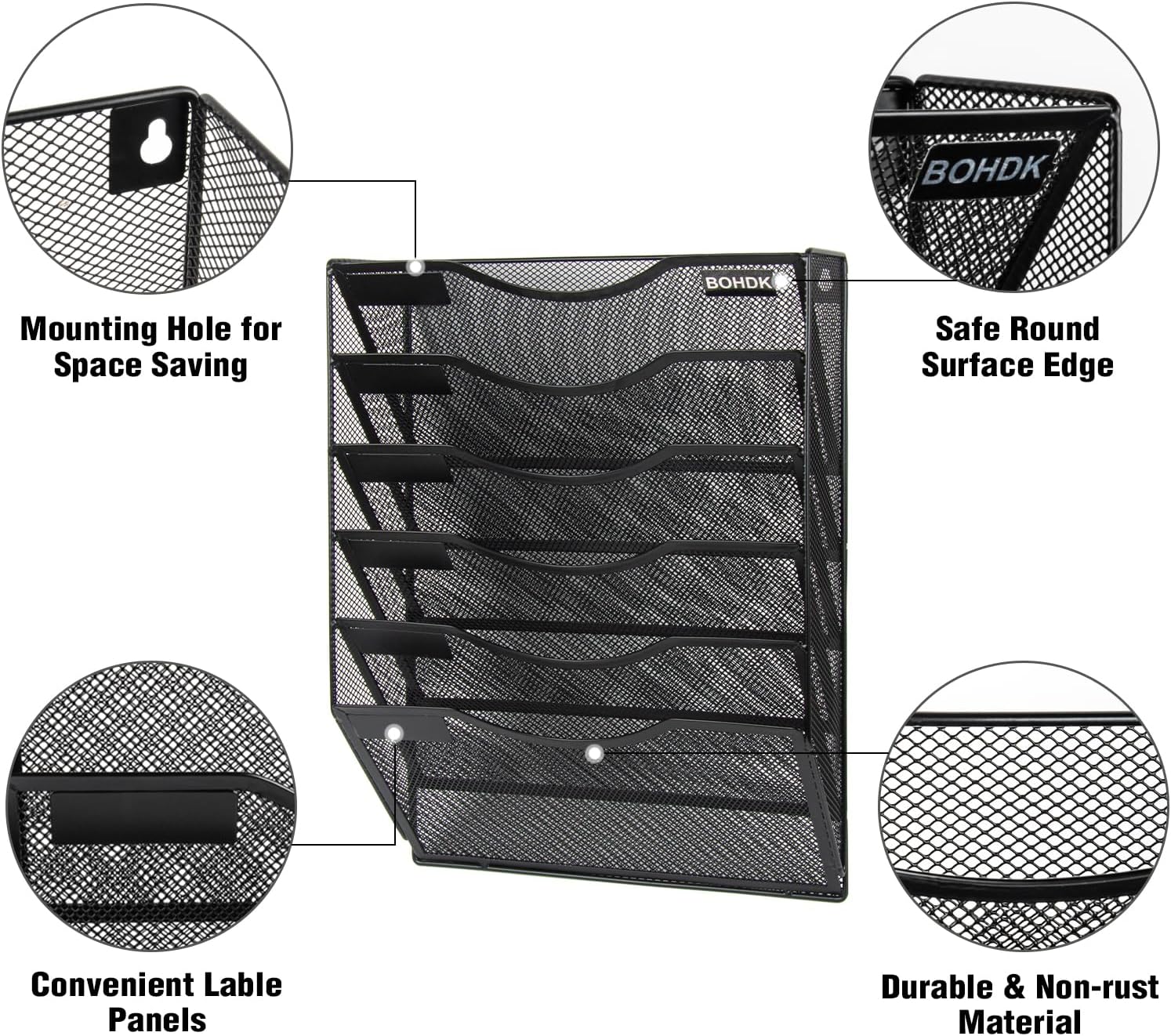 - 【Detail Dimensions】12.8" Lx3.8" Wx17.4" H. Perfect size for home and office. Product packaging: 6-layer file organizer, 2 screw caps, 2 screws. 100% satisfaction for you: You have a 12-month guarantee for BOHDK wall file organizers for any reason.