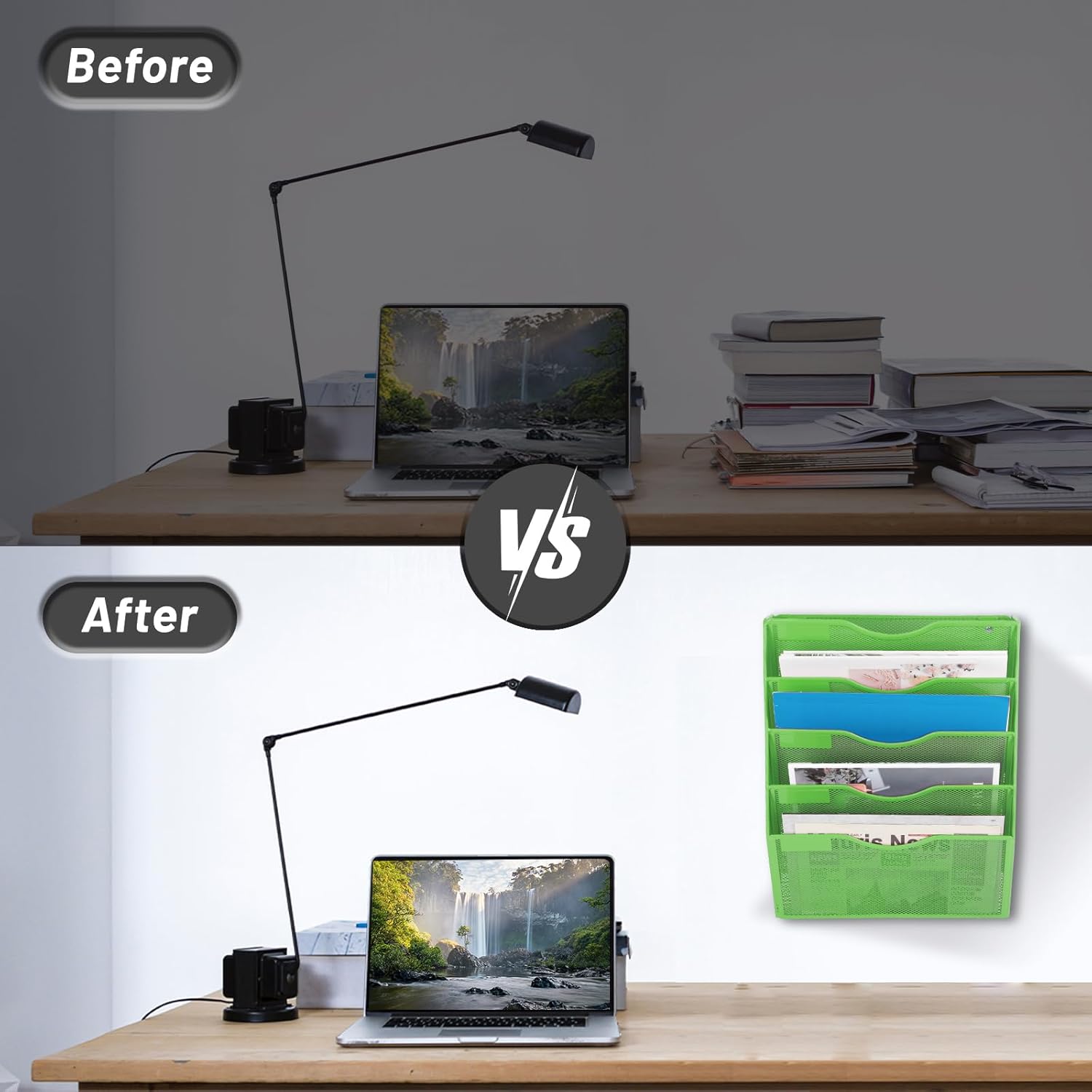 EASEPRES 5 Pocket Mesh Hanging Wall File Organizer, Wall Mounted Mail Paper Document Folder Holder, Clipboard Storage Organization Magazine Rack with Nametag Label for Office Home School, Green