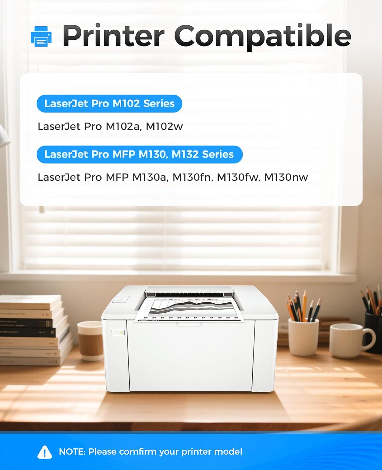 - Compatible Printers: Compatible with HP LaserJet Pro M102 M102a M102w, LaserJet Pro MFP M130 M132 M130a M130fn M130fw M130nw Series Printer.