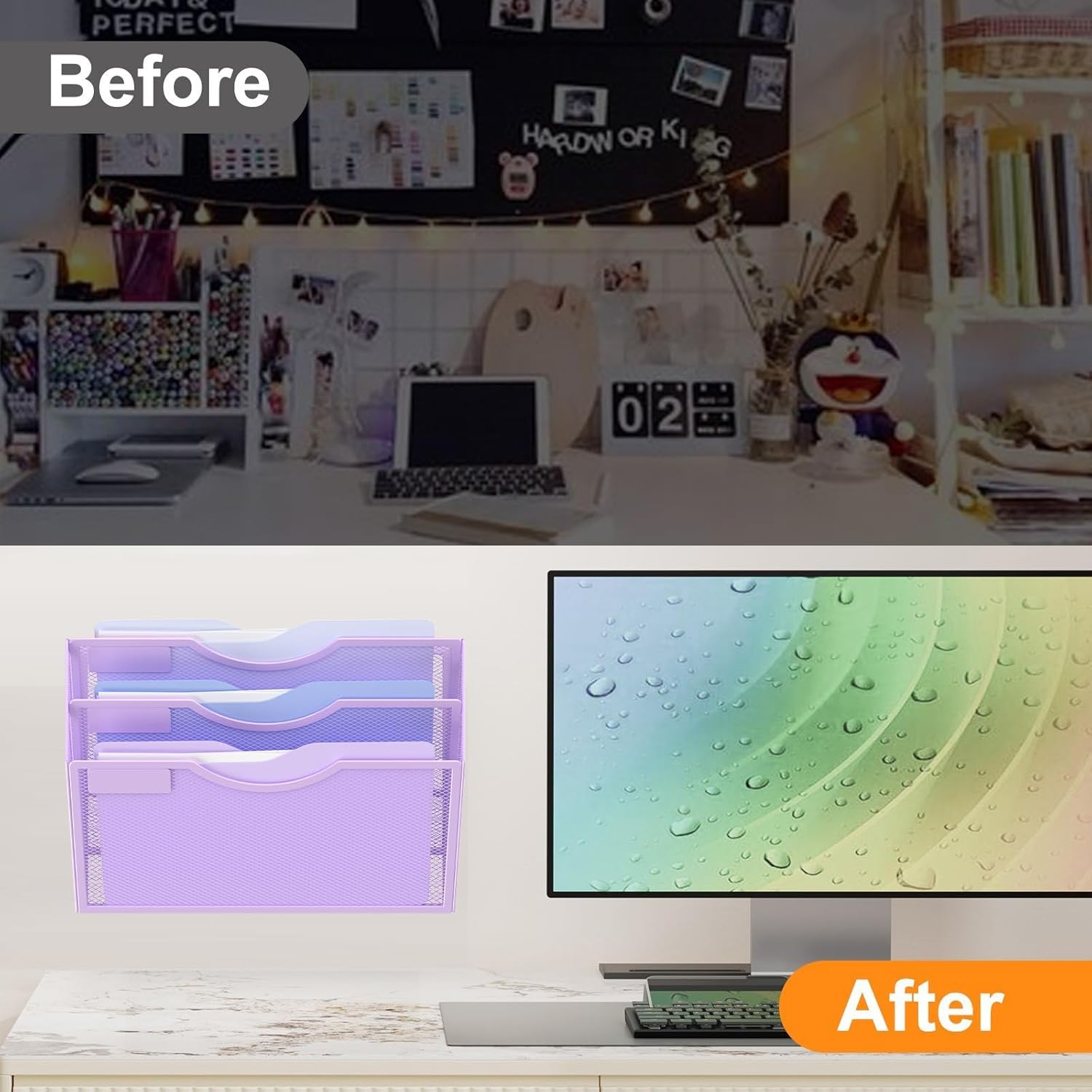 Kuntine.B 3 Pocket Wall File Holder Organizer Office Hanging Magazine Holder Wall File Organizer for Office Home (Purple, 3 Tier)