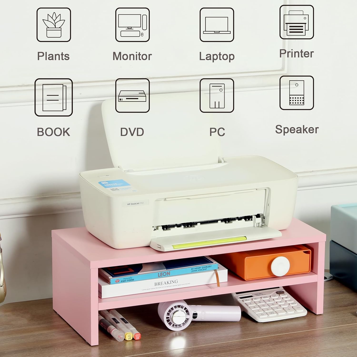 - Multi-function Stand: Teamix pink monitor stand riser can be used as a laptop stand, laptop riser, desktop shelves printer holder/TV stand riser with storage,even a small coffee bar for home office. Fits perfectly with laptops, keyboards, mouse, and keep your desktop tidy.