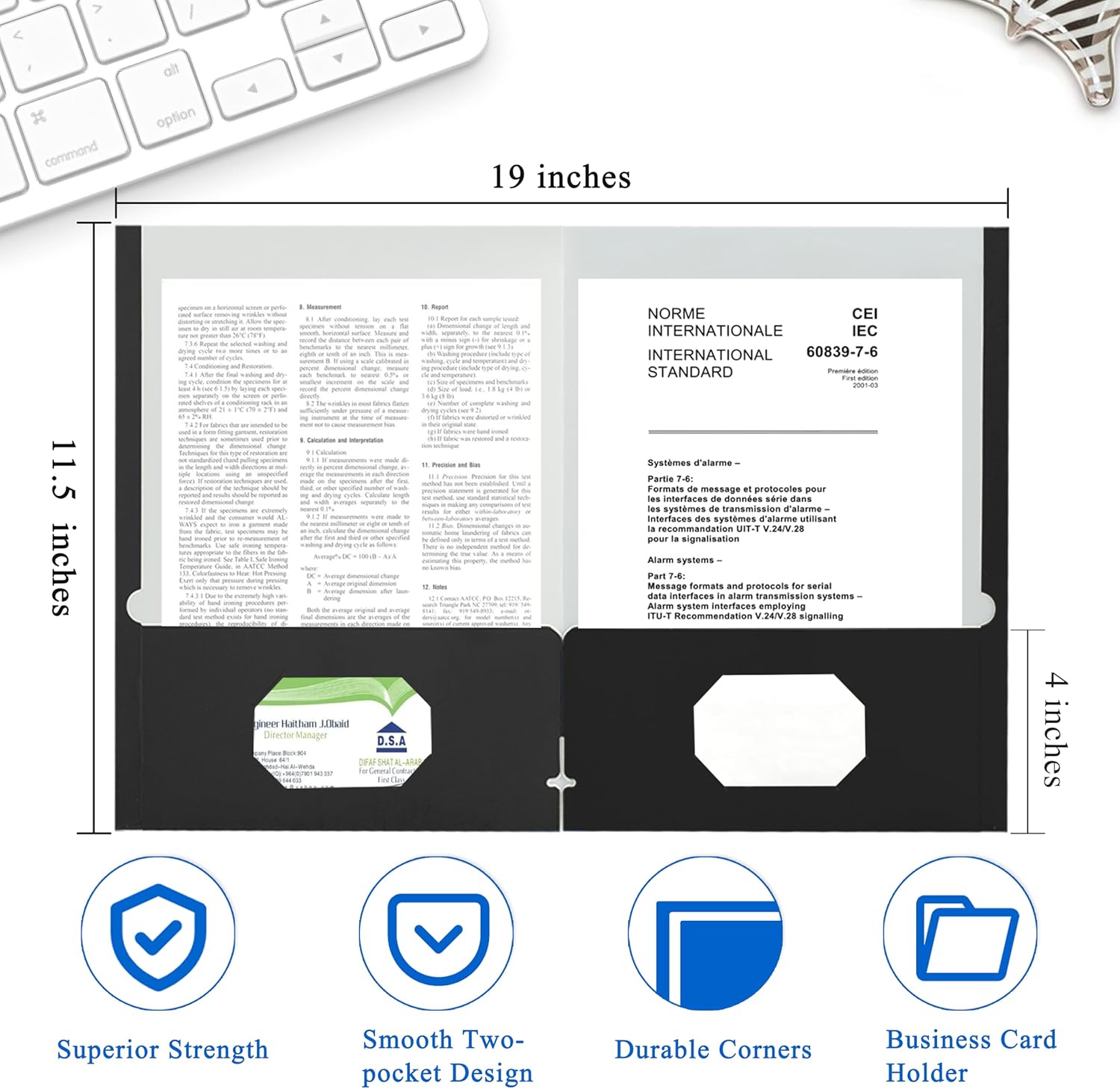 - PACKAGE INCLUDES: 50 packs black file folders with 2 pocket folders and 2 business card slot, 100 plus Sheet Capacity, enough use for you, perfect for school, paperwork, office, business.