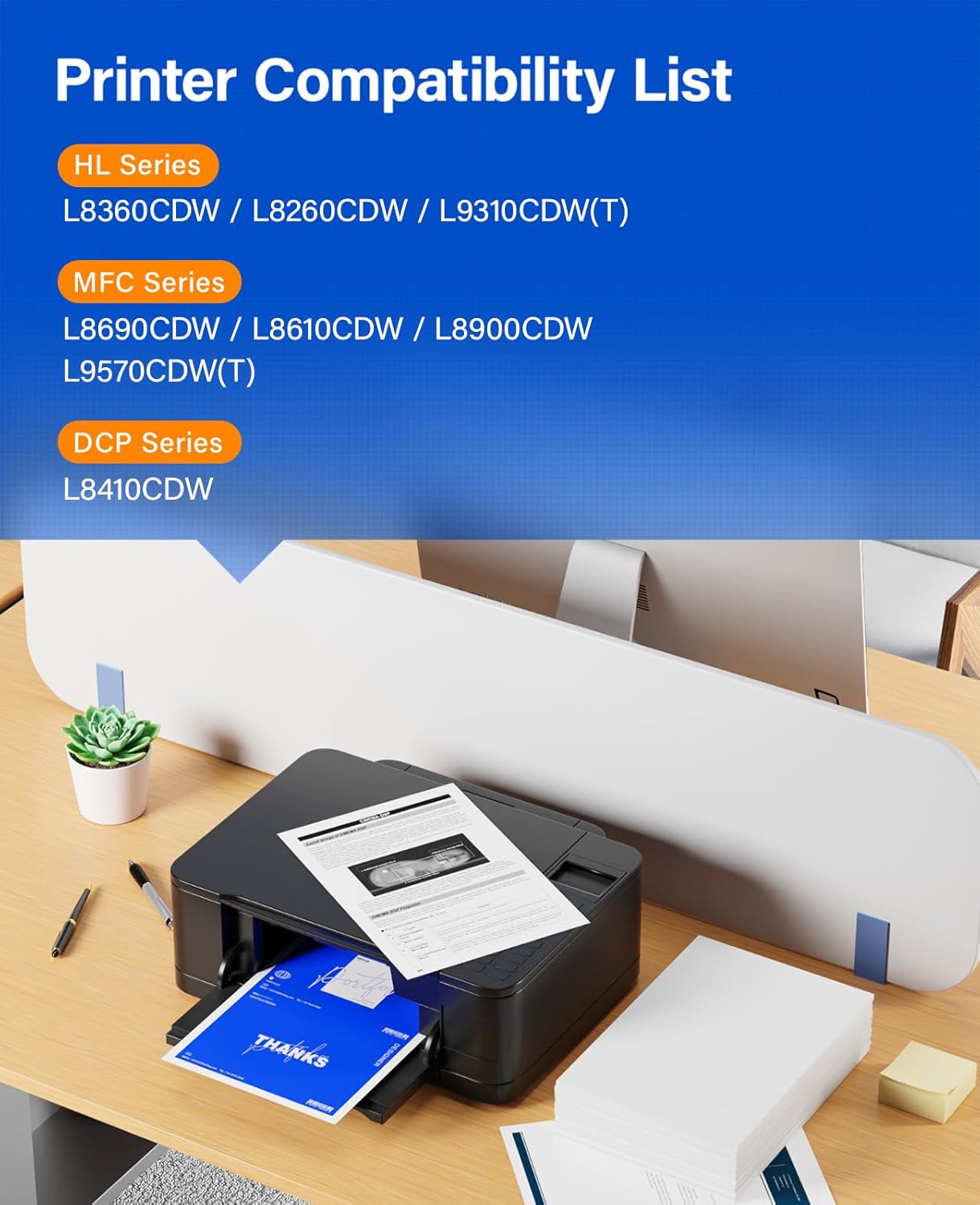 - Compatible Printer: Compatible with Brother HL-L8360CDW,HL-L8260CDW,HL-L9310CDW(T), MFC-L8690CDW,MFC-L8610CDW MFC-L8900CDW MFC-L9570CDW(T), DCP-L8410CDW (Please check that your printer model matches the printer model of this toner cartridge before placing an order).
