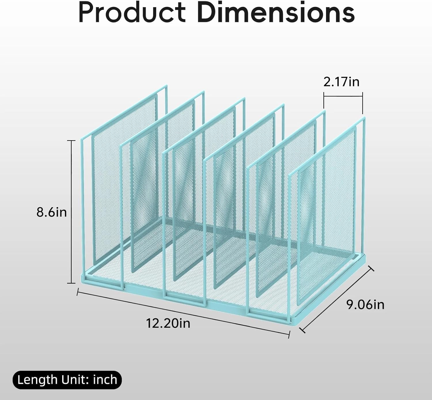 - [Elegant & Clean] This metal desk file organizer features anti-rust, smooth surface. The steel mesh design helps reduce dust buildup. Assembly Dimension:12.2"W x 9"D x 8.6"H