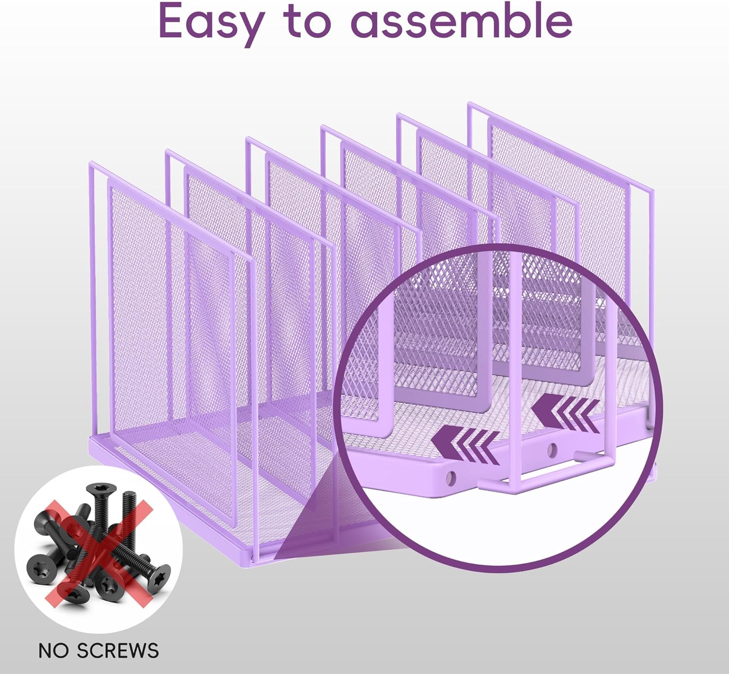- [Easy to Assemble] No screws, no screwdriver! Just pull the desk organizer out of the box, thread the hook of this file sorter into the holes. Then you can get a desktop file organization much safer and easier.