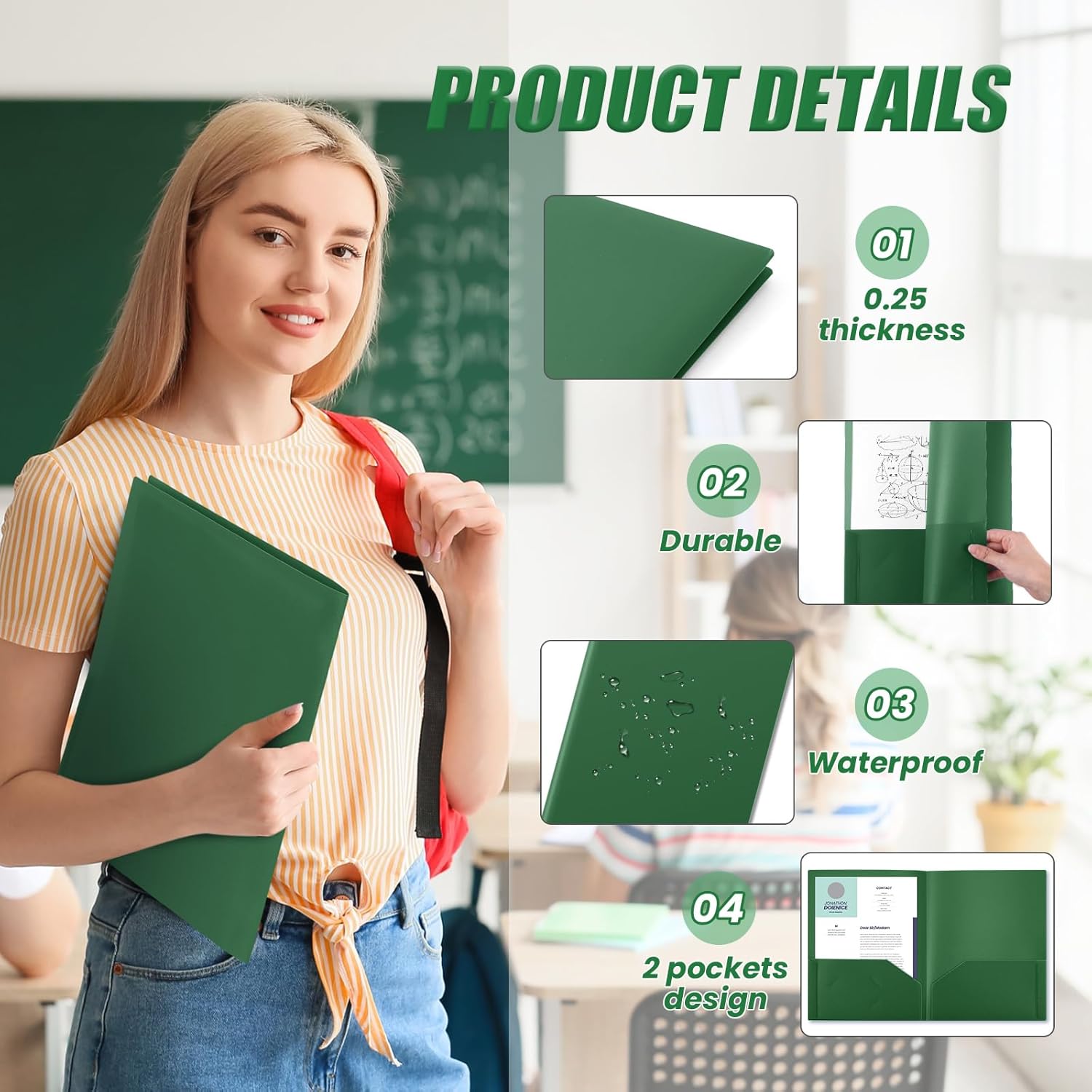 - Enough Quantity to Use and Replace: you will receive 24 pieces dark green plastic folders, each is designed with 2 pockets, fitting 8.5 x 11 inch letter size paper; Each pocket can stack 50 pages of letter size paper easily and neatly