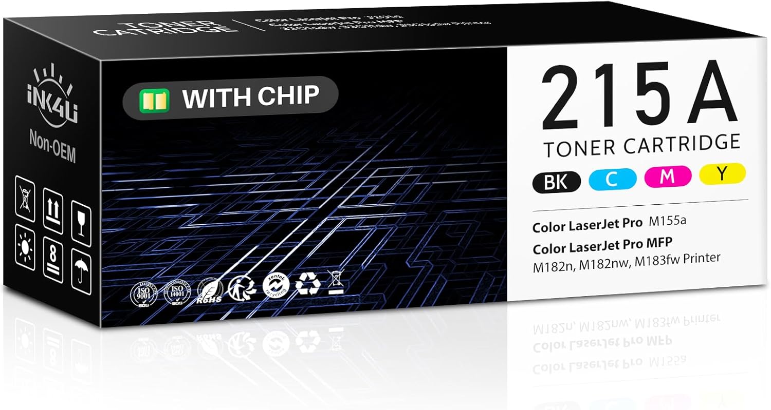 - 1. Product Item with Smart Chip: INK4U compatible toner cartridge replacement for hp 215A toner cartridges 4 pack