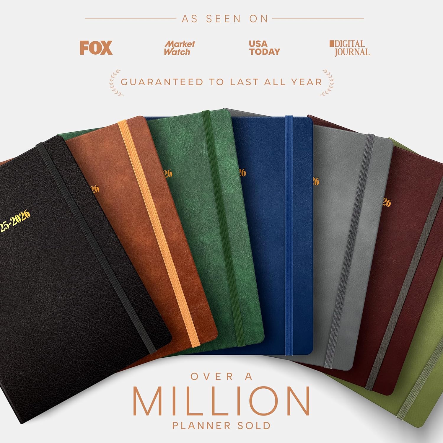 Ensight 2025-2026 HARDCOVER Leather Planner Weekly & Monthly - 6.5x8.5 Inches - Academic Planner Business Personal or Student - Pen Holder, Thick Paper, July 2025 - June 2026 (Olive Green)