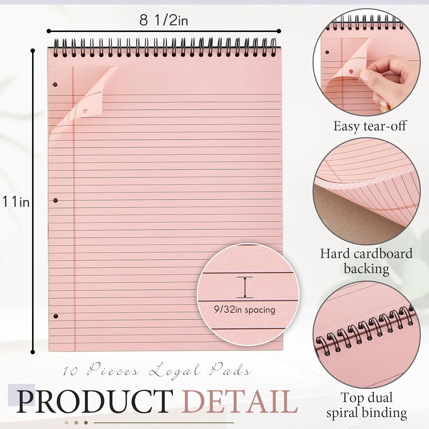 - Top Bound Spiral Notebook for Easy Note Taking and Clean Tear out: the legal notepads 8.5 x 11 inch are wire bound for ease of note taking; They also have an easy tear design, ensuring you can remove pages neatly and without any messy paper trails