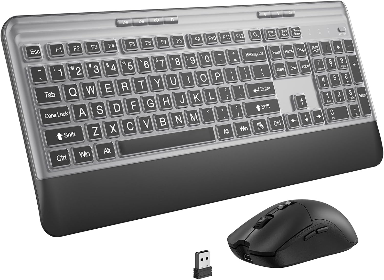 Silent Wireless Keyboard and Mouse Combo - Keyboard with Large Print Cover, 2.4GHz Full-Sized Ergonomic Keyboard with Wrist Rest and Mouse for Laptop, PC, Notebook, Desktop