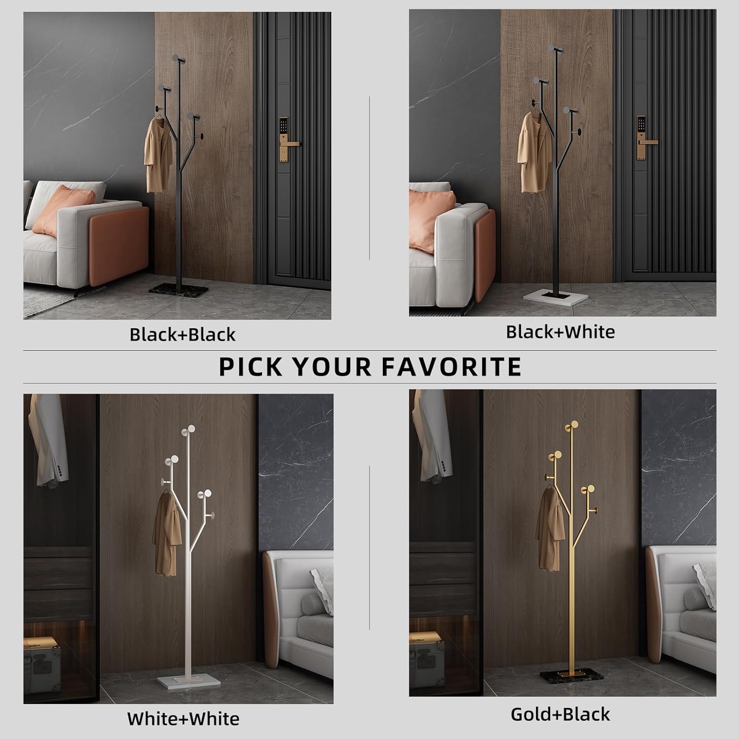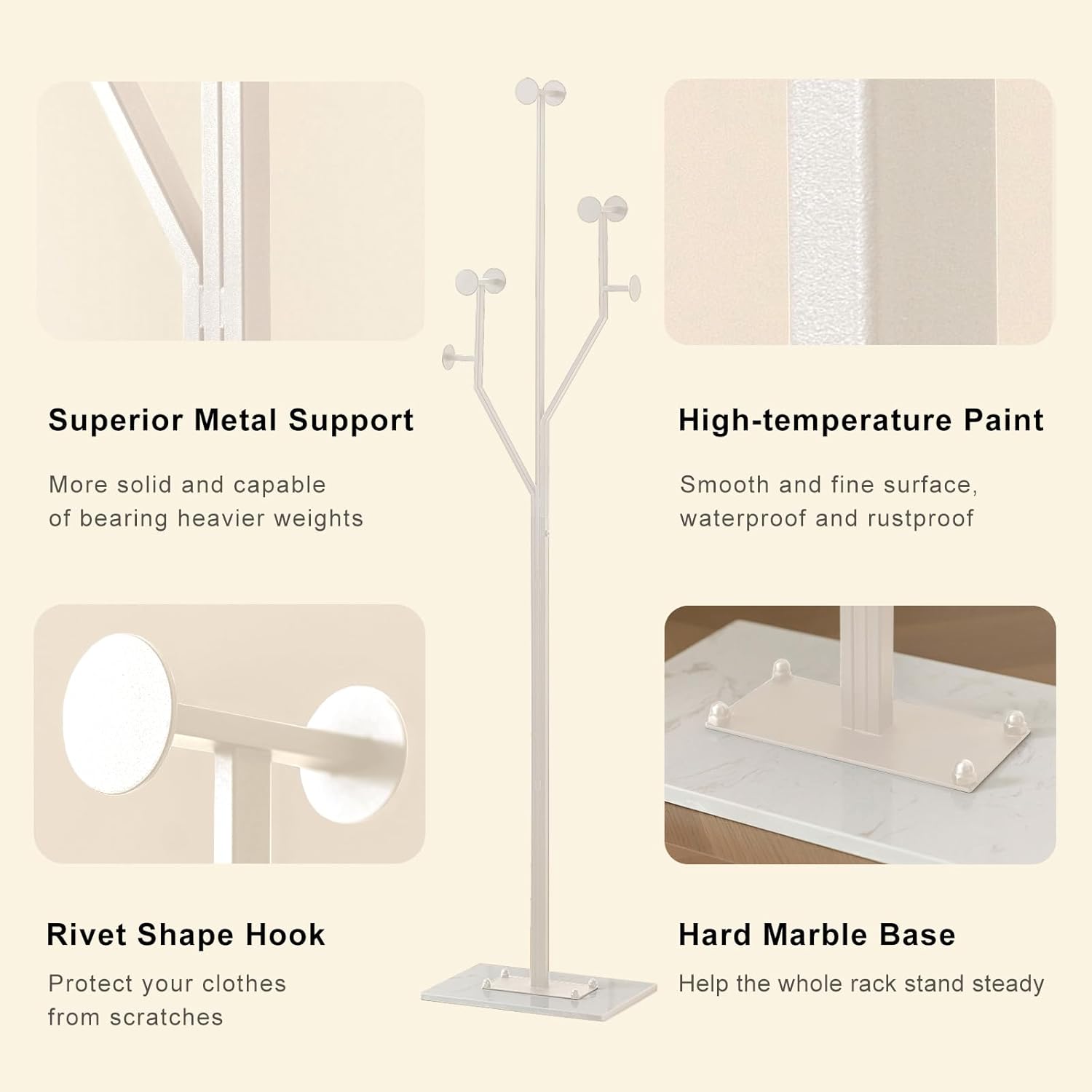 - Heavy-duty: Crafted from high-quality metal and paired with a 10.24” x 14.96” marble base, this tree-shaped corner coat rack offers exceptional stability and durability; Like a sturdy tree, it can support a heavy coat without tipping over