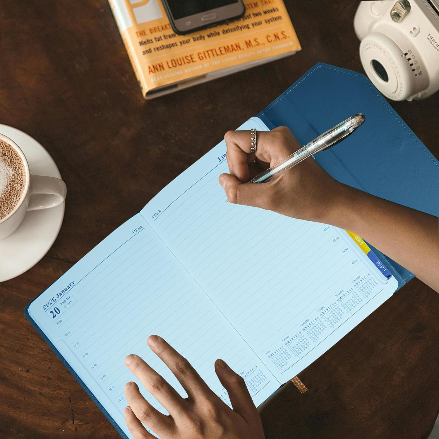 2026 Daily Monthly Planner - Calendar, January - December 2026, 100GSM Thick Paper, Leather Cover, Planner with Hourly Schedule,6.1" x 8.2", Daily Inside Page - Monthly Inside Page, Pen Holder, Bookmarks (Light blue)