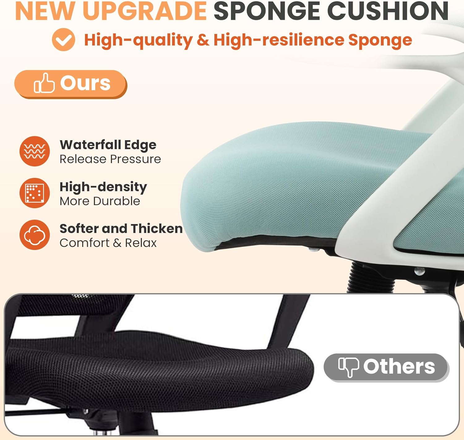 - THICKEN SEAT & SKIN-FRIENDLY FABRIC: Our drafting stools are made of softer and thicken foam to bring you more comfortable sitting experience. High resilience and high density sponge is durable and not easy to deform for long-time use. While skin-friendly mesh avoid any unpleasant rough feeling, it also adds some elegance for your room.