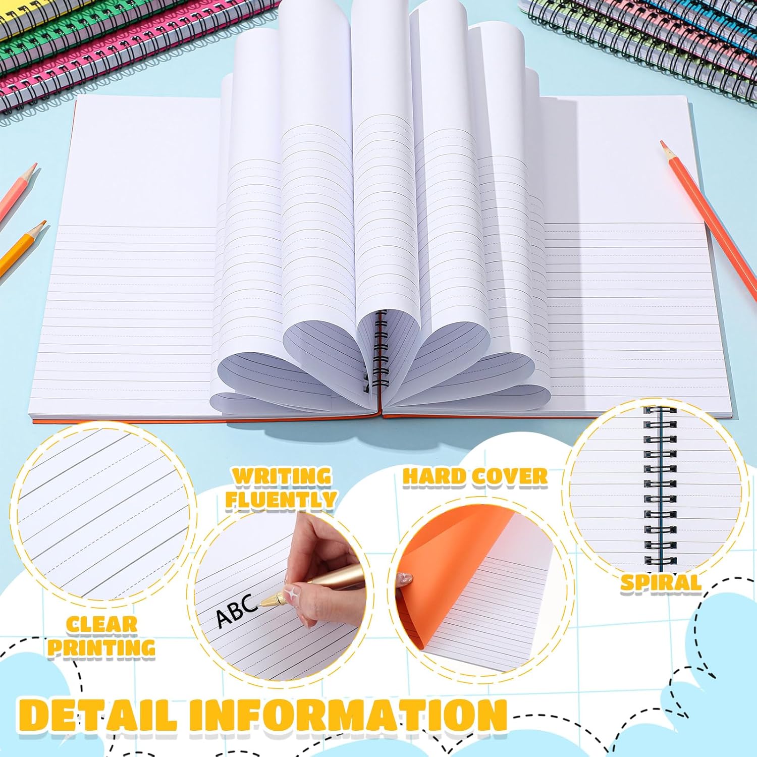 Henoyso 10 Pcs 100/50 Sheets Primary Composition Notebook K-2 Bulk Spiral Primary Journal Drawing Handwriting Practice for Kids Kindergarten 1st 2nd Back to School Supplies (Stylish Color,100 Sheets)