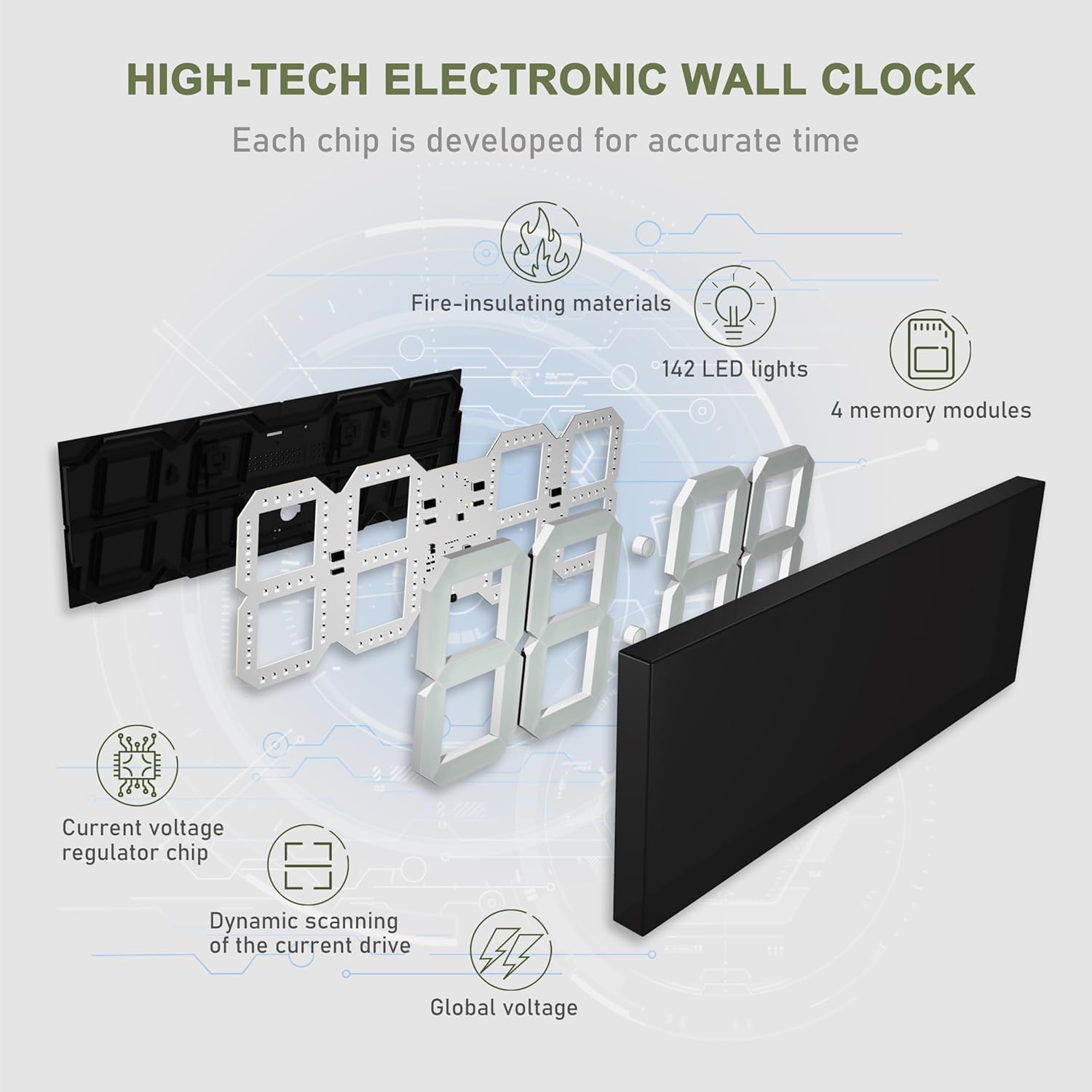 - 【More Details are been Promoted】4 memory chips were added to the clock; Upgraded the wall clock CPU chip, provide the more precise timing; Upgrade the LED display refresh rate, more stable display and good for your eyes; Upgrade the remote control distance for 49 ft; (without any obstacle.) We do our best to provide a more useful and accurate digital wall clock.