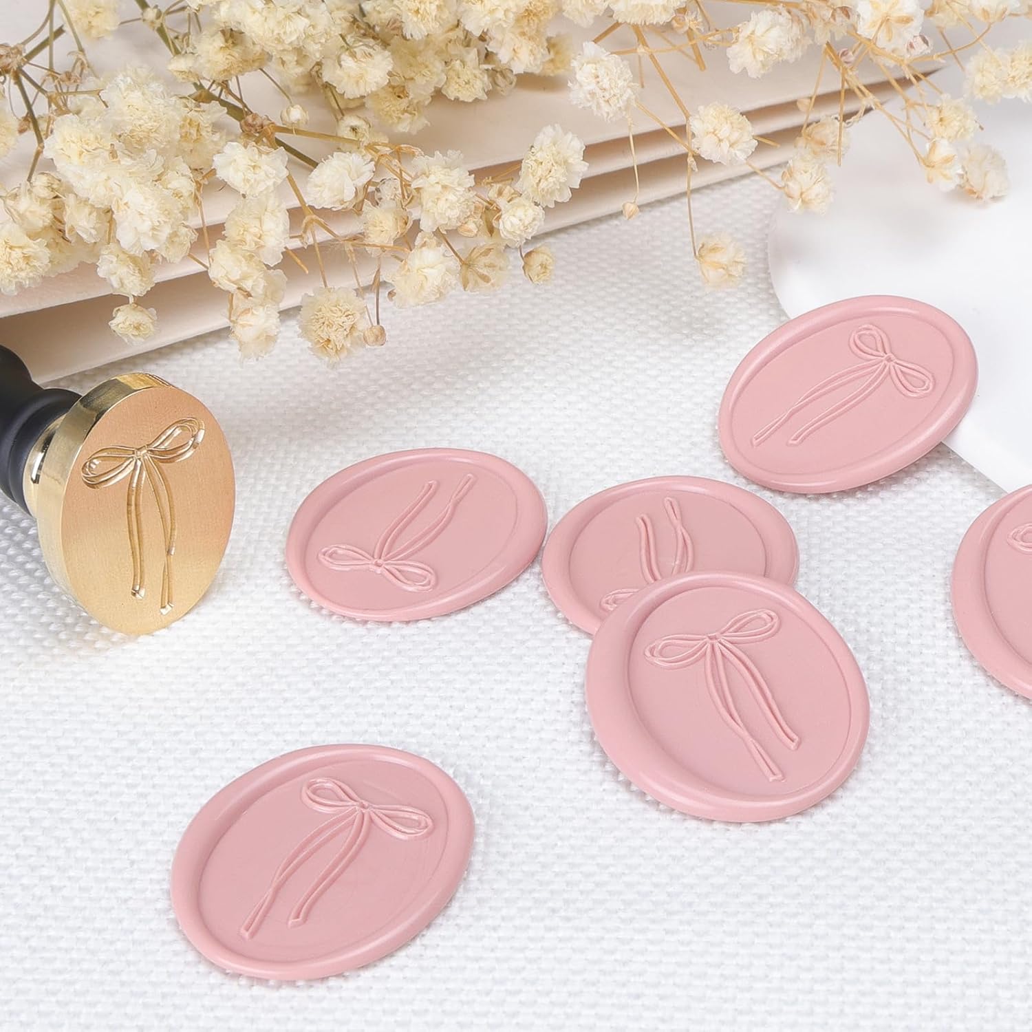 - Unique Flowing Ribbon Bow Design: You will get 1 wooden handle and 1 oval bow wax seal stamp(wax is not included). Perfect for adding a personal touch to any special occasion.Approx. 1.1inch / 2.8cm