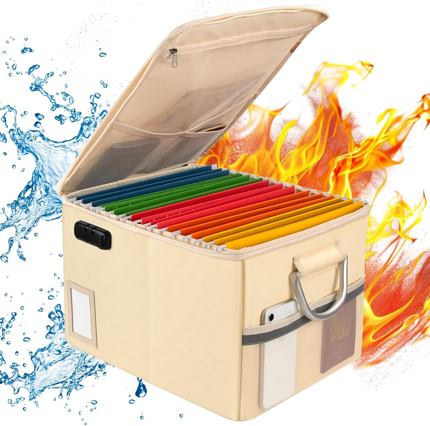 - Fireproof and water-resistant safe: The exterior material of Fireproof File Box is made of upgraded anti-static silicone coated fiberglass, which can withstand temperature up to 2000℉. Fireproof Document Box is not only fireproof but also highly water-resistant, so you don't have to worry about your important documents getting wet by rain.(Does not include folders)
