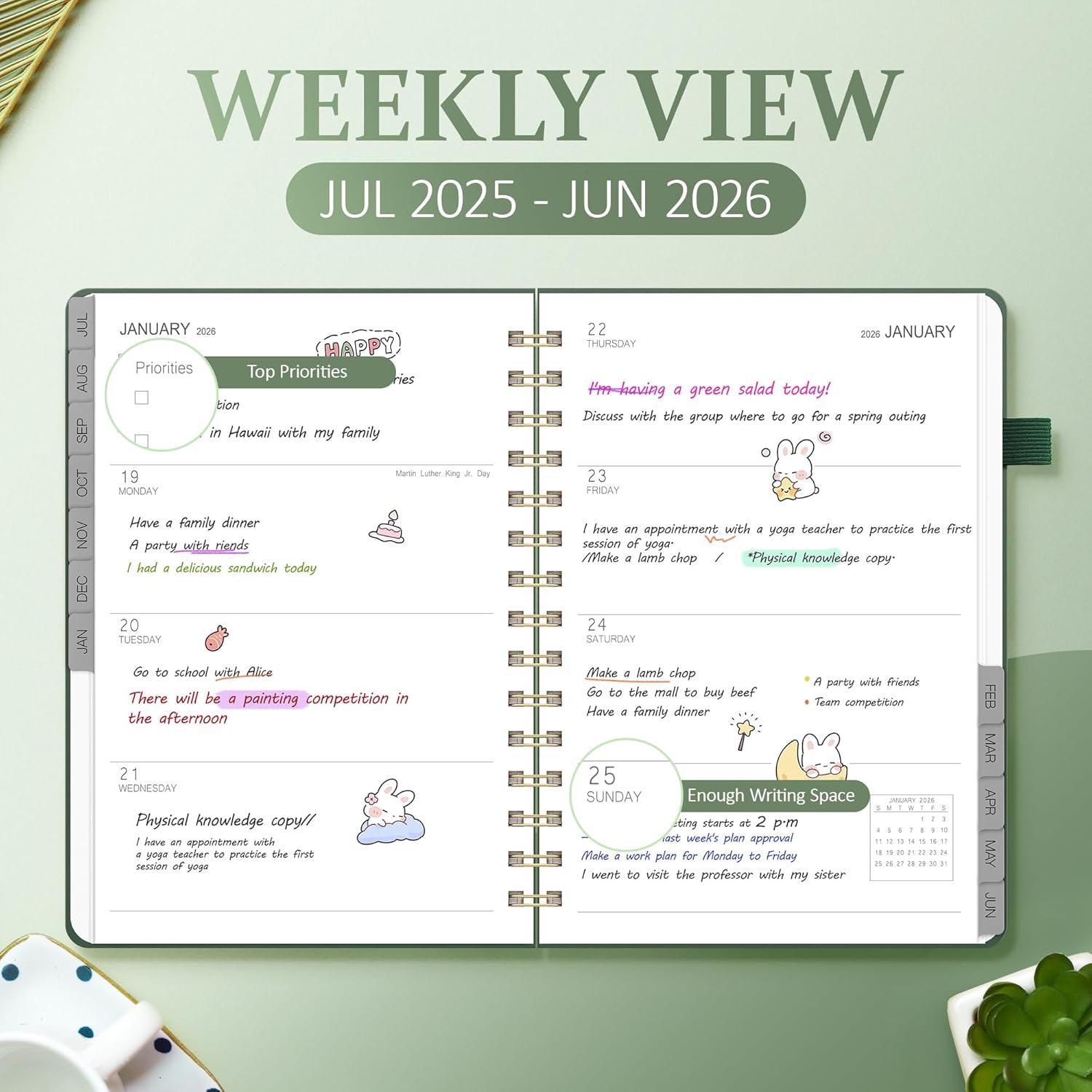 - Stay organized and productive: Achieve more with the A5 Academic & Professional 2025-2026 Planner! Covering July 2025 to June 2026, it provides 12 months of structured monthly/weekly spreads with dedicated spaces for assignments, meetings, and personal goals. The lay-flat design and 6.4"x8.3" compact size ensure portability and ease of use. Whether you're balancing school, work, or personal projects, this planner keeps you on track with clarity and style.
