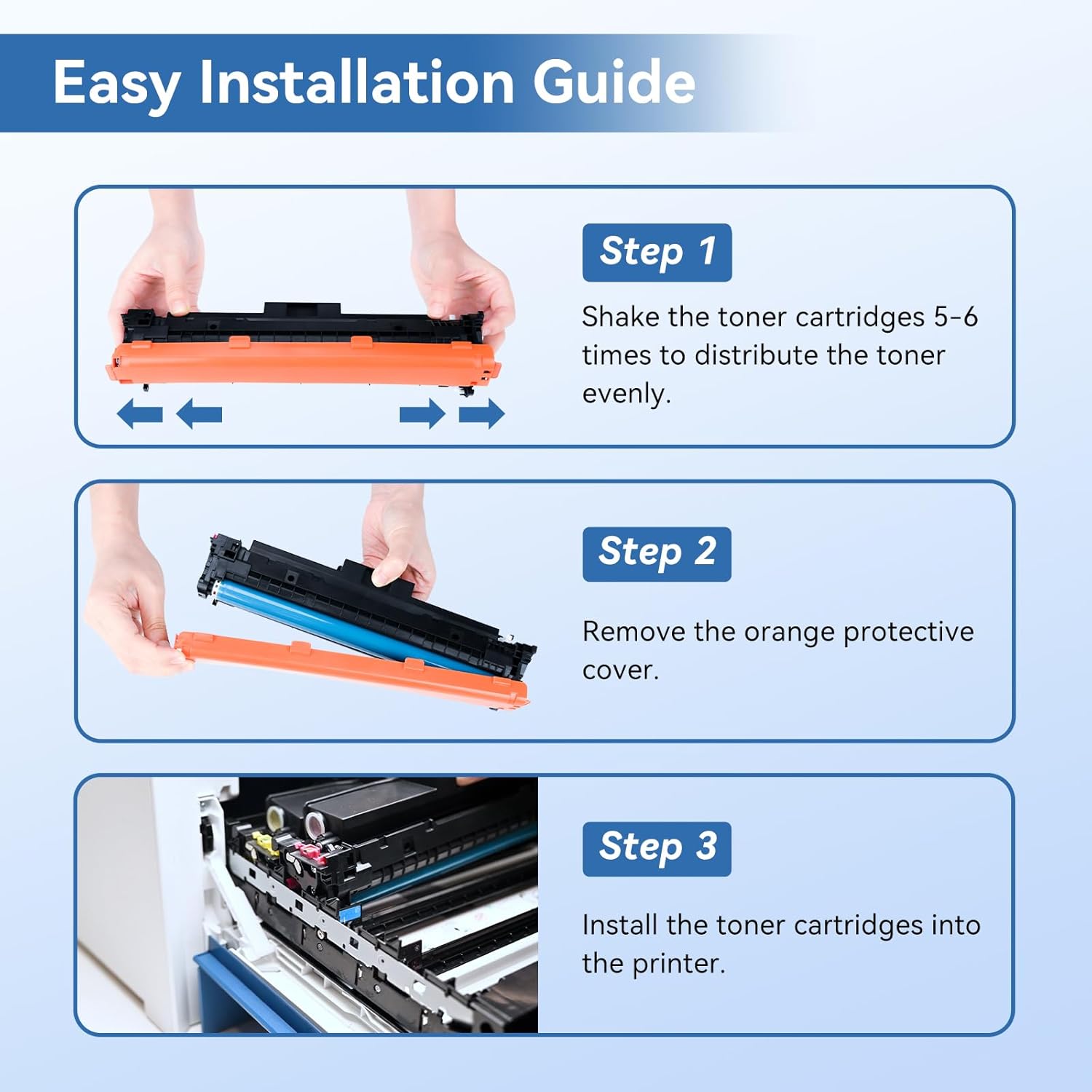 - 【WITH CHIP】: 210X Toner Cartridges 4 Pack High Yield Compatible Replacement for HP 210X 210A Toner Cartridges Set High Yield with chip, NO Need to Remove and Install the OEM 210X 210A Toner Chip Manually