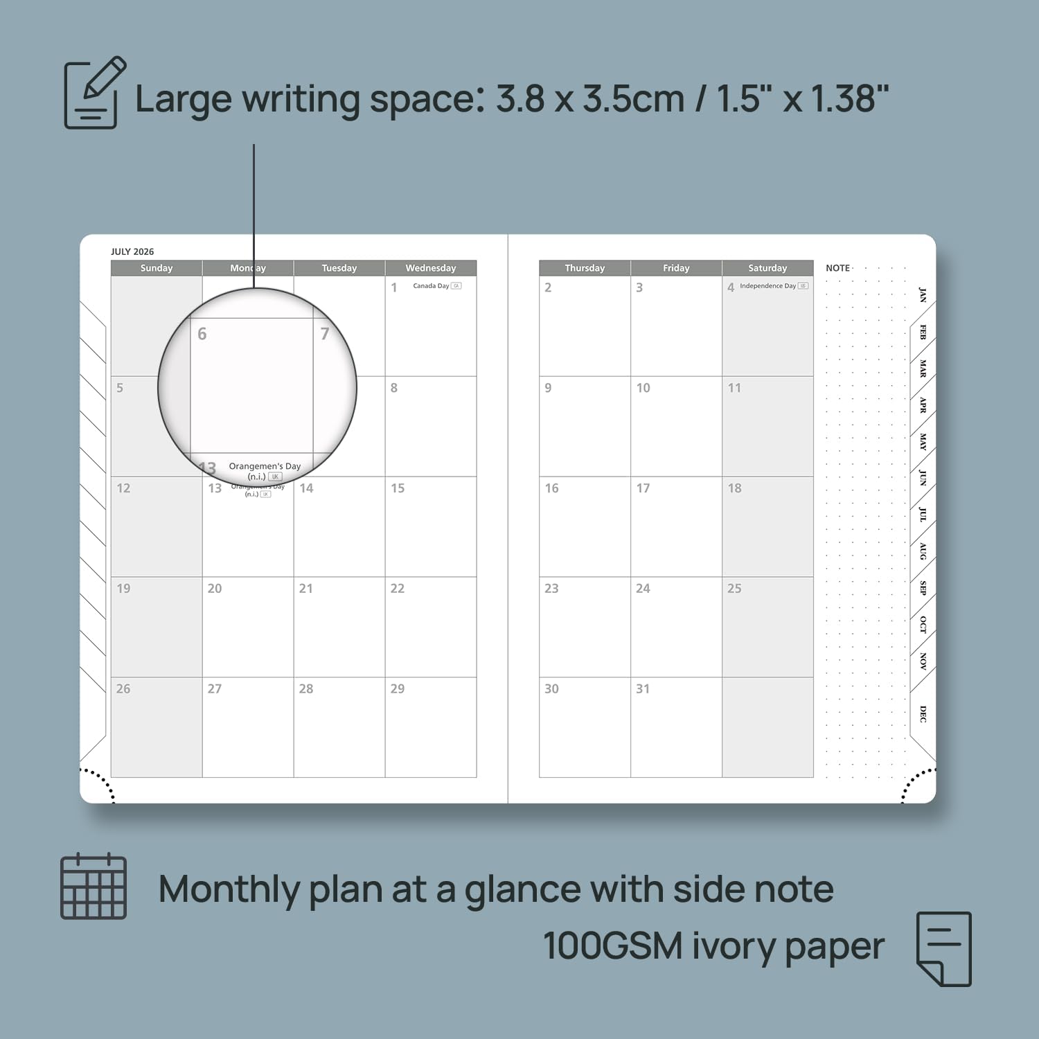 - EXTRA FUNCTION PAGES: This weekly calendar also contains "2026-2027" Year Planner Pages + "2026" Birthday & Important Date Pages + Expenses Pages + Calendar Pages + Holiday Reference Pages + Dotted Notes Pages + Contacts Pages+ Password Pages, providing space for recording important information and enhancing organization.