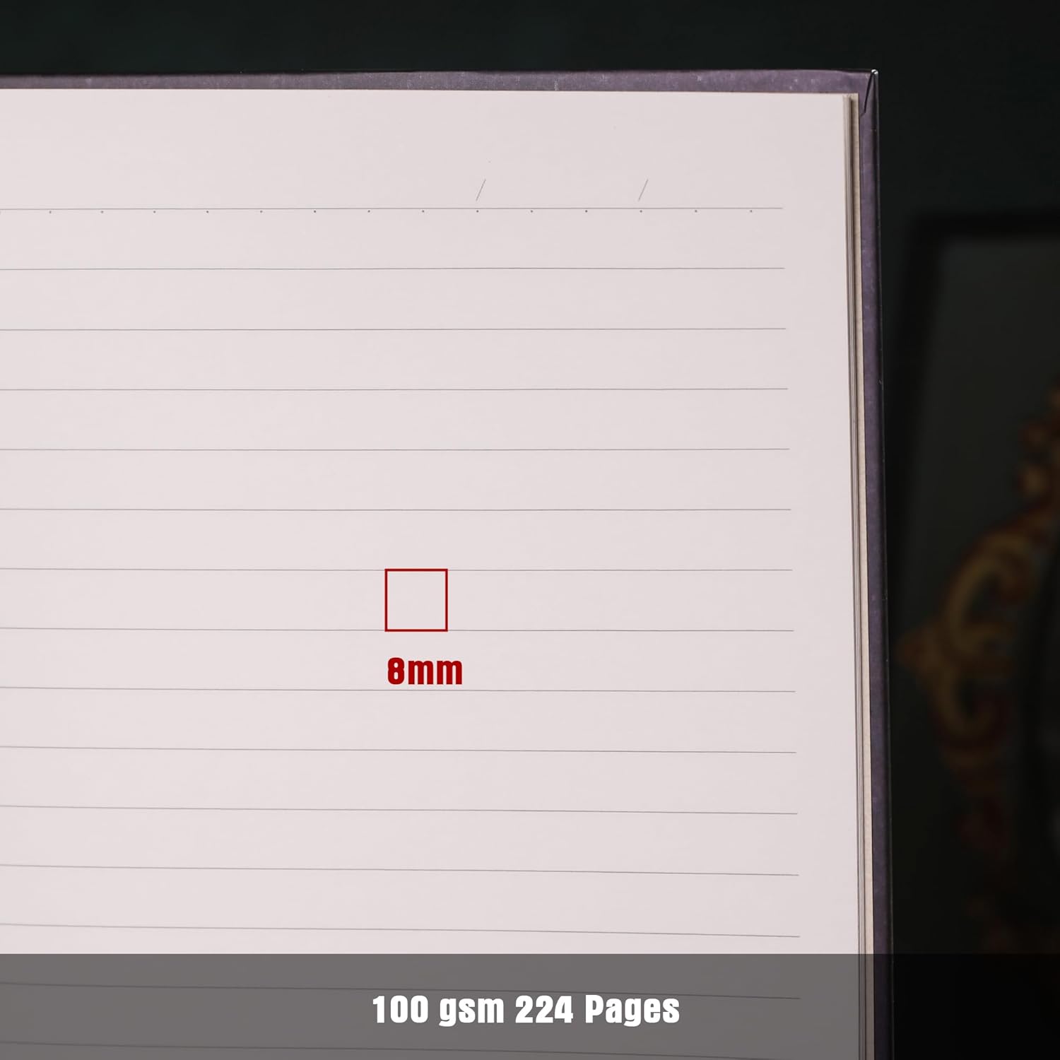 - Moderate spacing: The inner pages feature 8 mm horizontal lines, which are spaced just right to keep text neatly aligned while leaving enough room for handwriting. This makes them perfect for writing in Chinese and English, handwritten collages, or jotting down ideas.