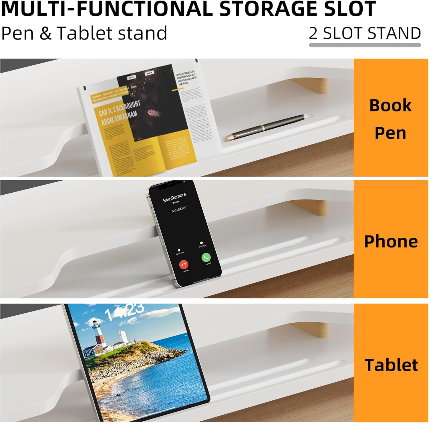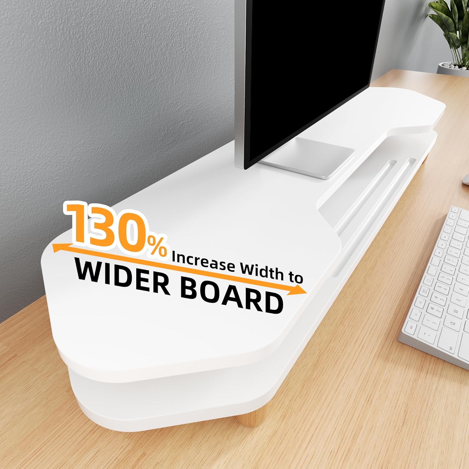 2 Tier White Dual Monitor Stand Riser,Wider Board Computer Monitor Stand for 2 Monitors,Slot For Phone/Tablet Office Desktop Organizer for Laptop,PC,Computer,Printer,White