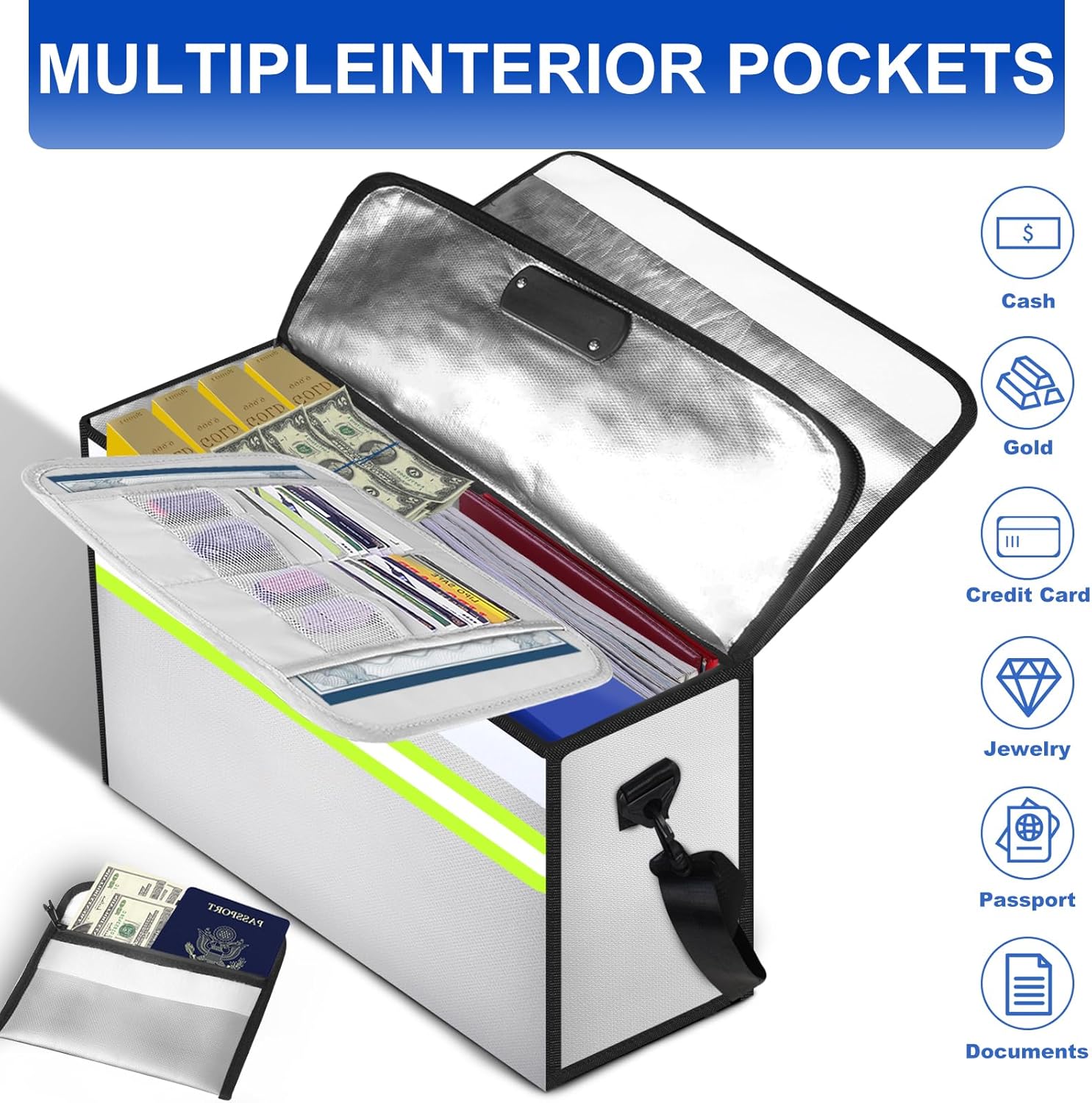 - ✅EXTRA LARGE CAPACITY. Extra large interior dimensions (16.5x12.4x5.5 inches) accommodate the largest binders and provide space for laptops, valuables, and more. Our unique U-shaped zipper closure maximizes open space for easy access to items, while the straight zipper fireproof pocket limits loading. The interior zipper pocket allows you to safely store small items such as passports, cash, and jewelry.