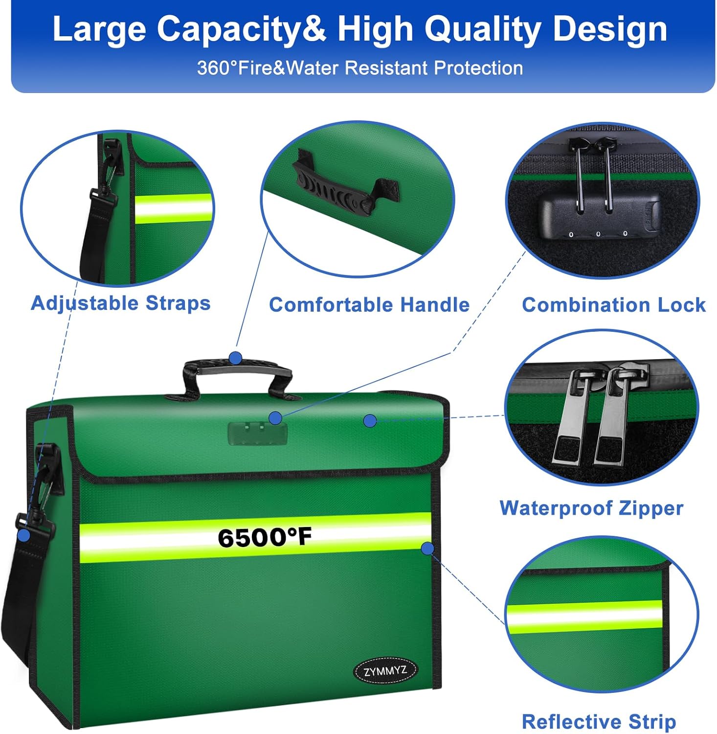 - ✅EXTRA LARGE CAPACITY. Extra large interior dimensions (16.5x12.4x5.5 inches) accommodate the largest binders and provide space for laptops,valuables,Our unique U-shaped zipper closure maximizes open space for easy access to items, while the straight zipper fireproof pocket limits loading.The interior zipper pocket allows you to safely store small items such as passports,cash, and jewelry.