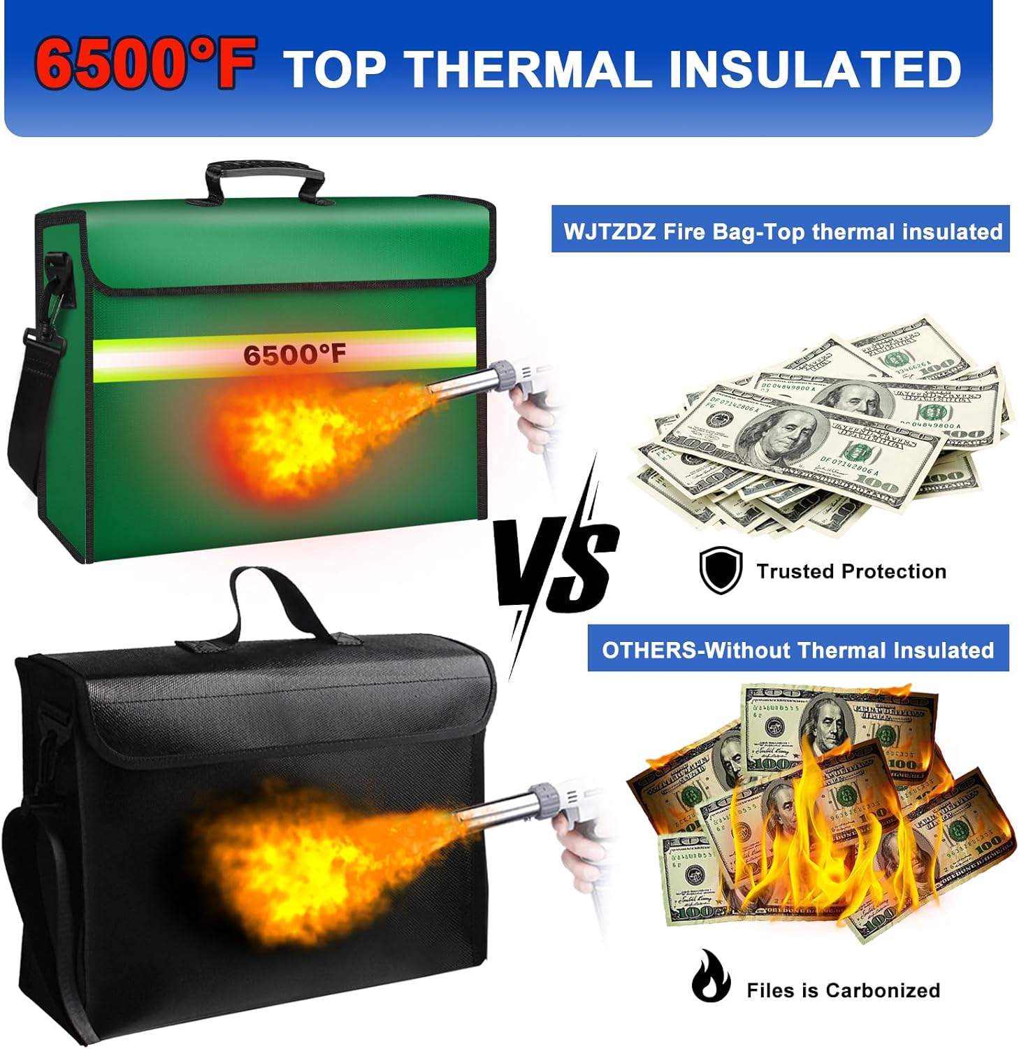 • ⚠️ (Note) Fireproof doesn't mean it can withstand prolonged fires, and waterproof doesn't mean it can withstand prolonged immersion in water; it simply means it can prolong your rescue time. ✅Ultimate Fireproof and Waterproof: This upgraded SGS UL94-certified important document storage box is made from thickened silicone-coated fireproof cotton and aluminum foil. The fully enclosed flip-top design provides seamless fire protection and can withstand temperatures up to 6500°F.