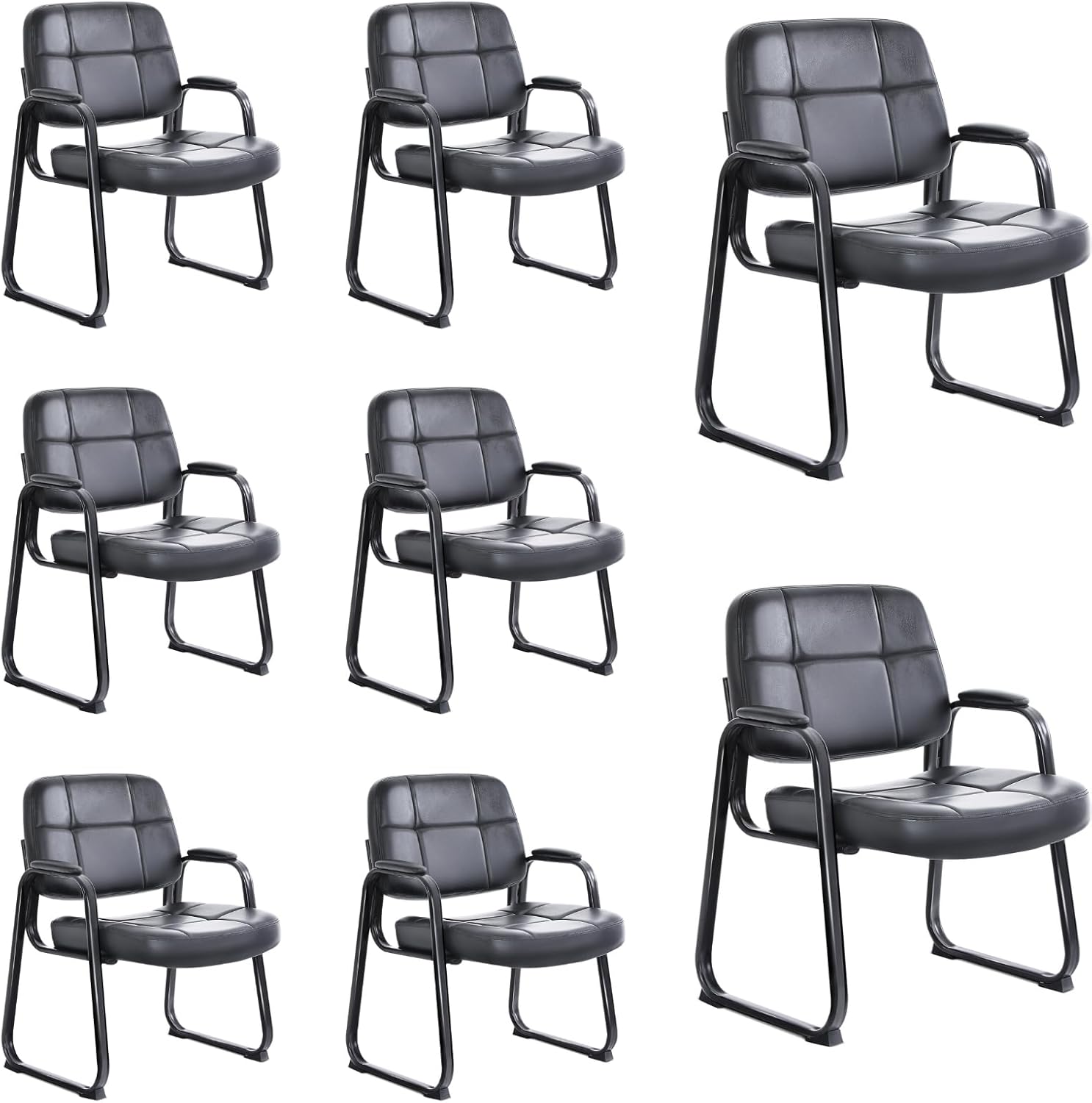 CLATINA Big & Tall Waiting Room Guest Chair with Bonded Leather Padded Arm Rest and Sled Base for Office Reception Lobby and Conference Desk, Black(8 Pack)