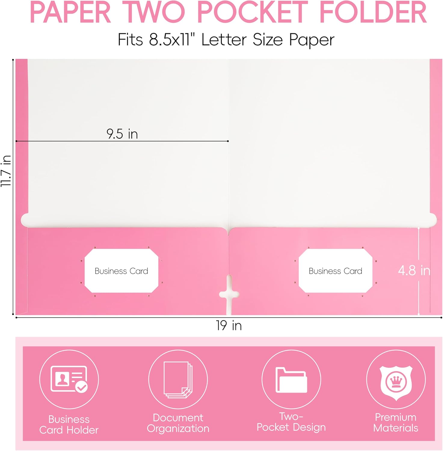 50 Pack Folders with Pockets, Pocket Folders Fit Letter Size Paper, with Business Card Slot, 2-Pocket Folder for School Office Home Business
