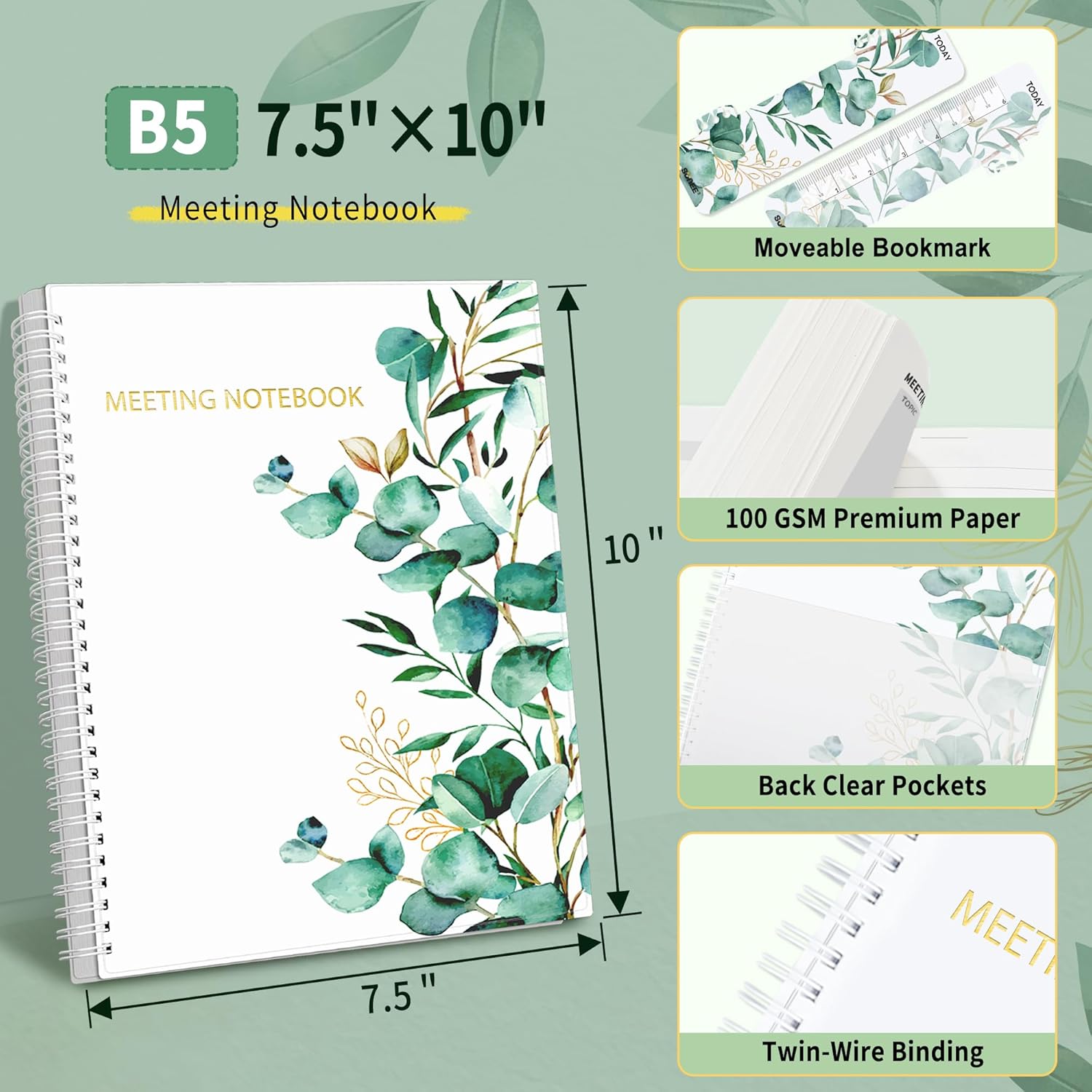 - Fight Ink-bleeding & Great Size: The high-end 100gsm paper could prevent ink bleeding through or feathering, handle double-sided writing and most daily use pens pretty well. The office/business work notebook measures 7.5"x 10"(similar to B5 size), Generous size provides ample space to jot down your meeting notes.