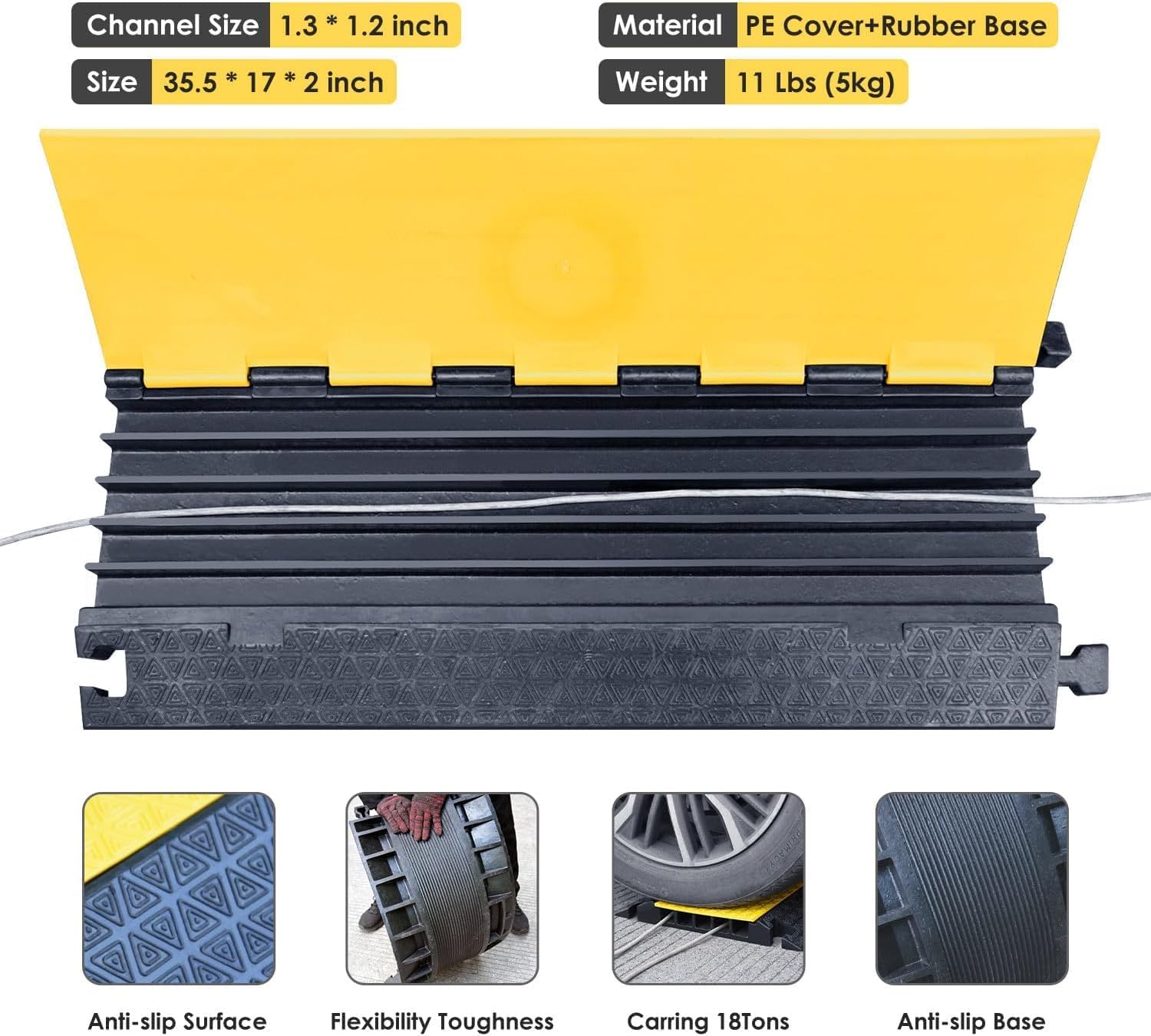 - Industrial Grade Materials: The hose protctor ramp can bear 1600 KG/35200 LBS, making it safe for both cars and trucks to pass through