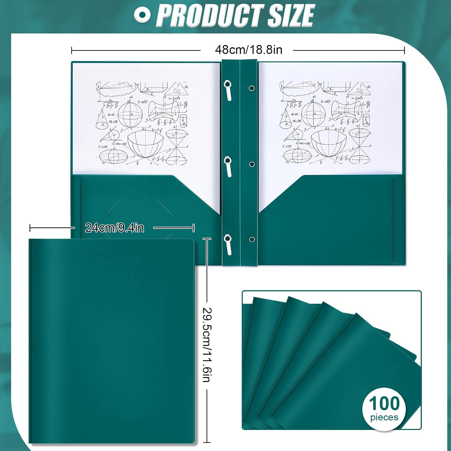 Lincia 100 Pcs Plastic Folders with Pockets and Prong Folders with Prongs 2 Pockets for Office, School for Students, Teachers, Office Workers(Dark Green)
