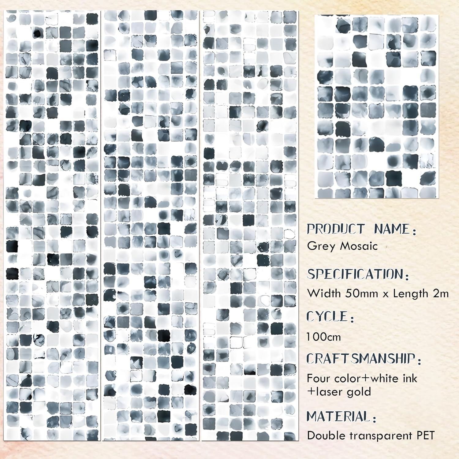 - Elegant Design Scrapbook Tape: This PET tape features a sophisticated black and white mosaic pattern, adding a modern touch to your creative projects