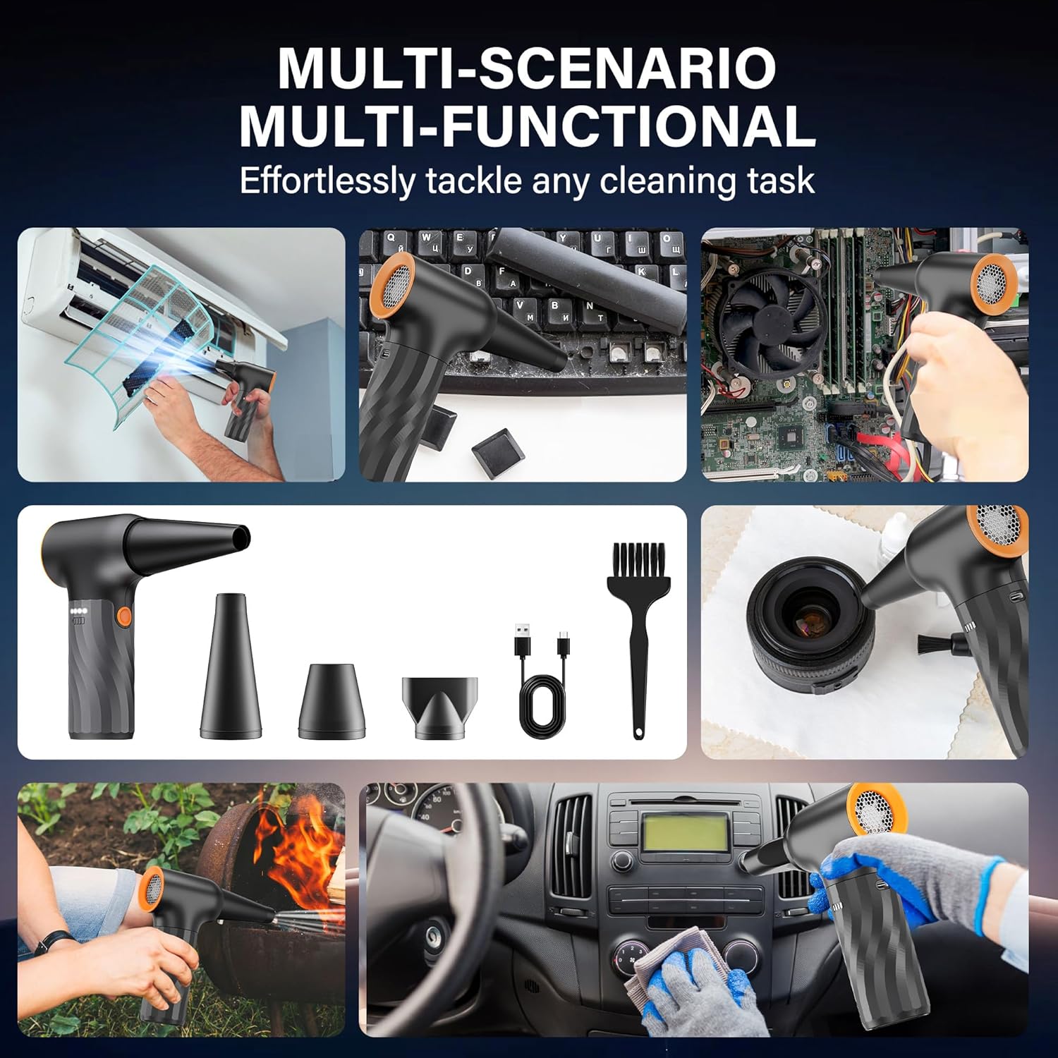 - 【Multi-Surface & Versatile Cleaning】More than a computer air duster, it tackles keyboards, car interiors, BBQ charcoal, inflatables, and pet hair. Compact and lightweight, it’s a portable must-have for PC cleaning kits, workshops, and outdoor adventures.