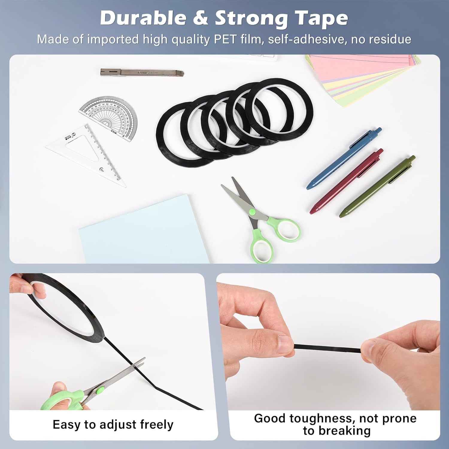 - 【High-Quality PET Material】:tape for white board is made of durable PET vinyl, this white board tape offers strong adhesion for smooth surfaces like whiteboards, glass, and plastic, these pin striping tapes are long-lasting, reusable, and easy to apply